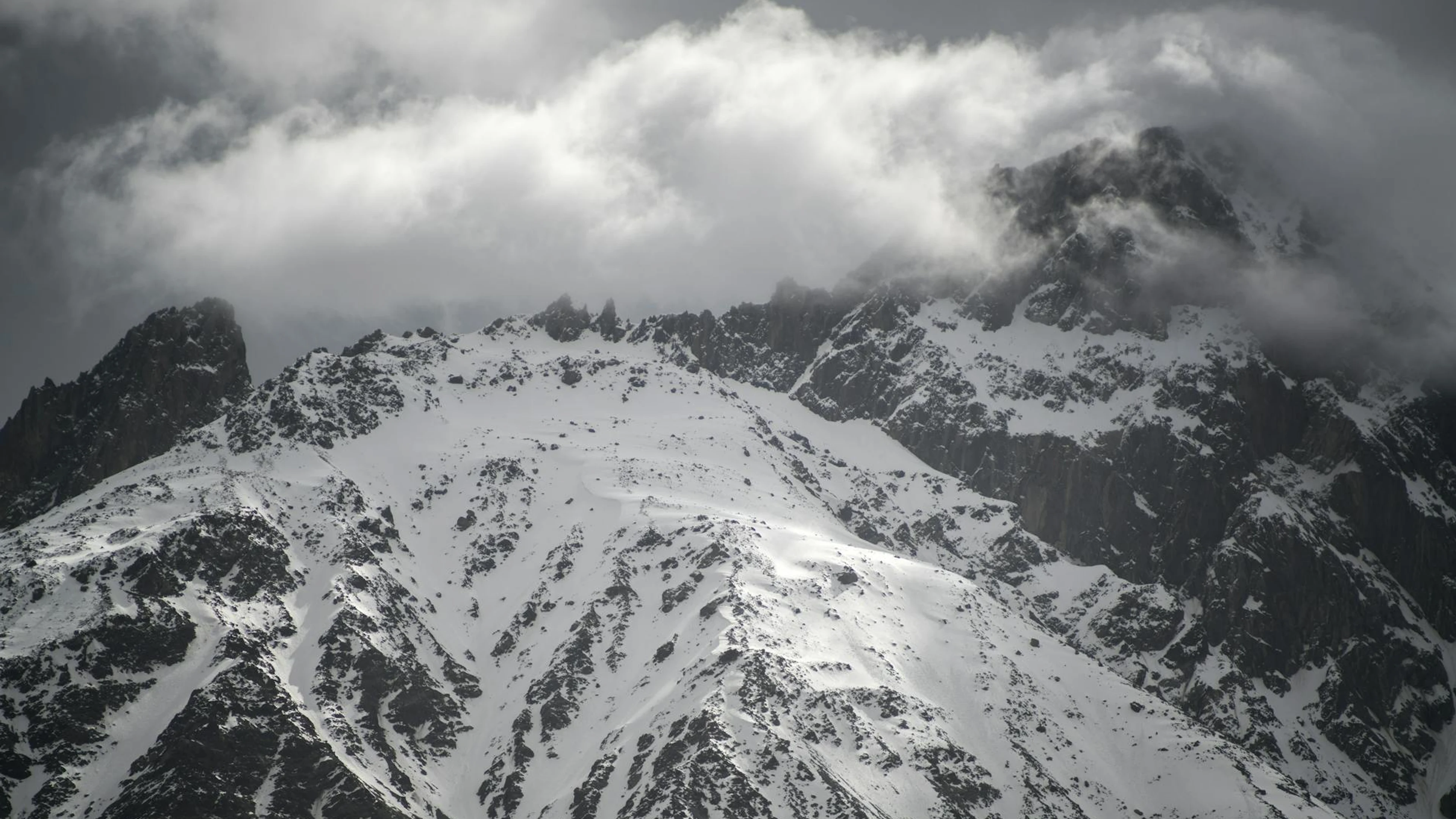 Get this stunning A breathtaking view of a snowy mountain summit shrouded in thick clouds, capturi wallpaper in 4K Ultra HD quality. 3840x2160 mountain wallpaper available for free download.