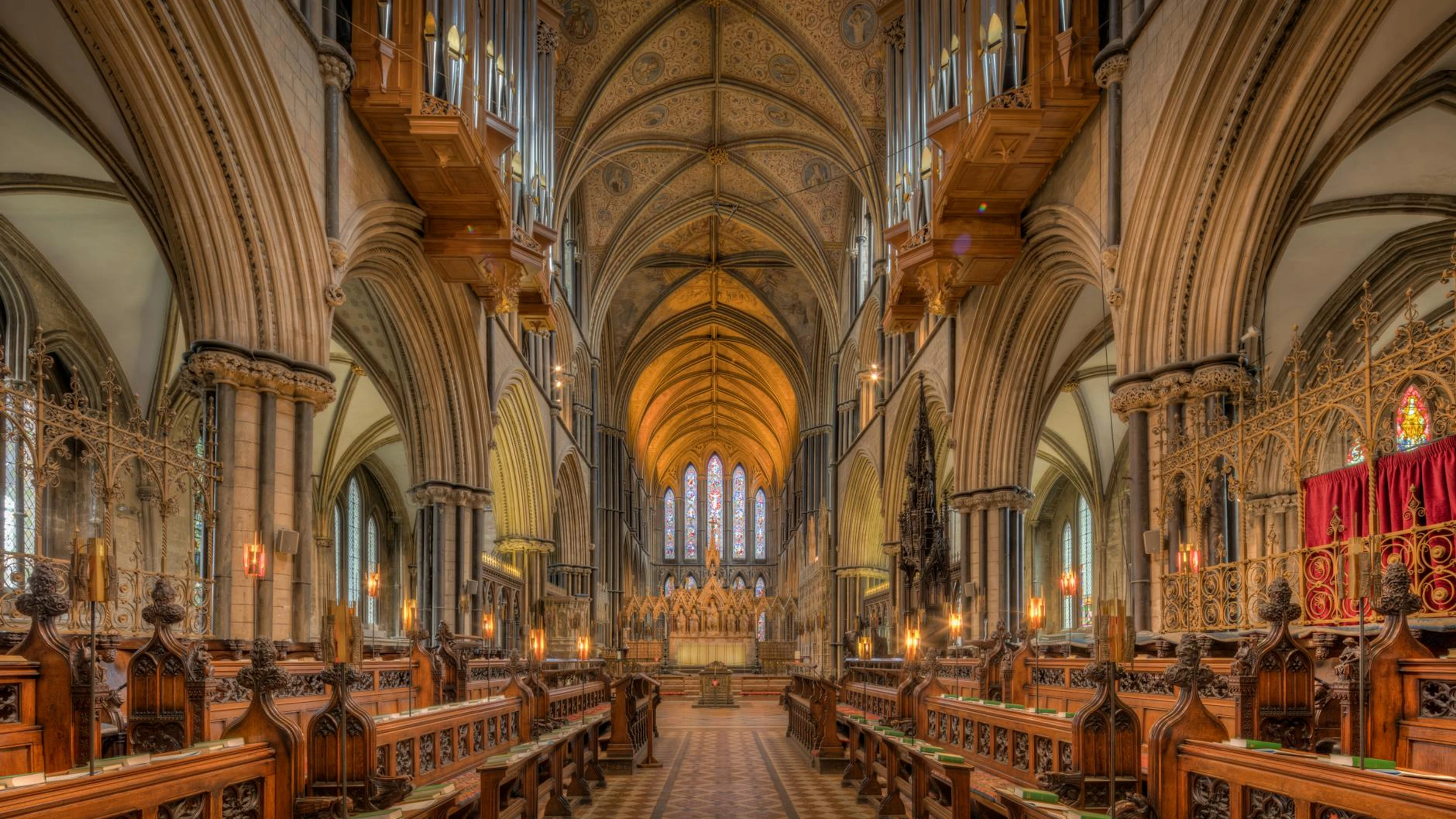 Download A breathtaking view of the ornate Gothic architecture inside Worcester Cathedral wallpaper for free. 3840x2160 4K Ultra HD resolution, perfect for your desktop. High quality architecture wallpaper.