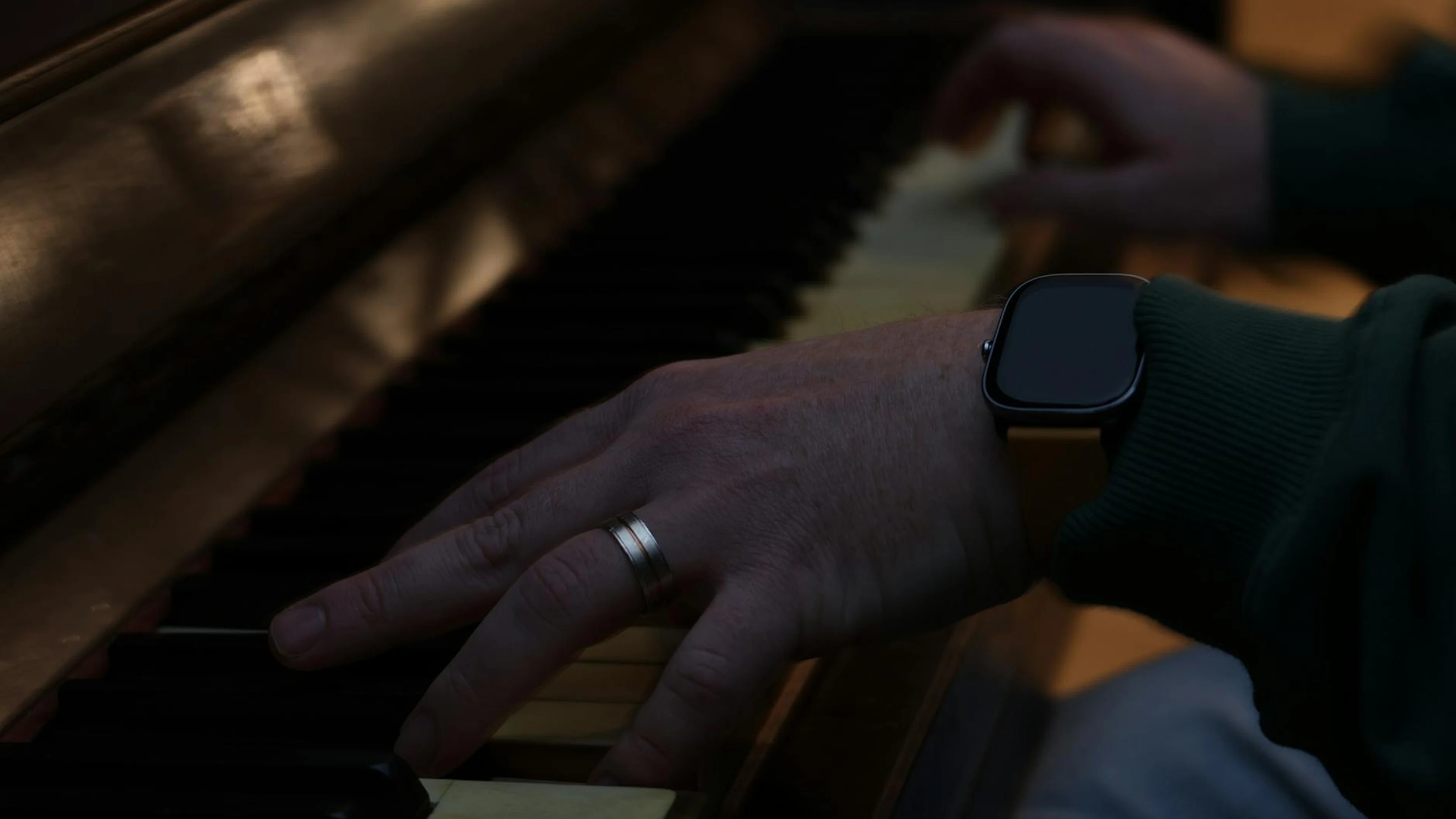 A close-up shot of a person playing piano, highlighting hand gestures with a mod