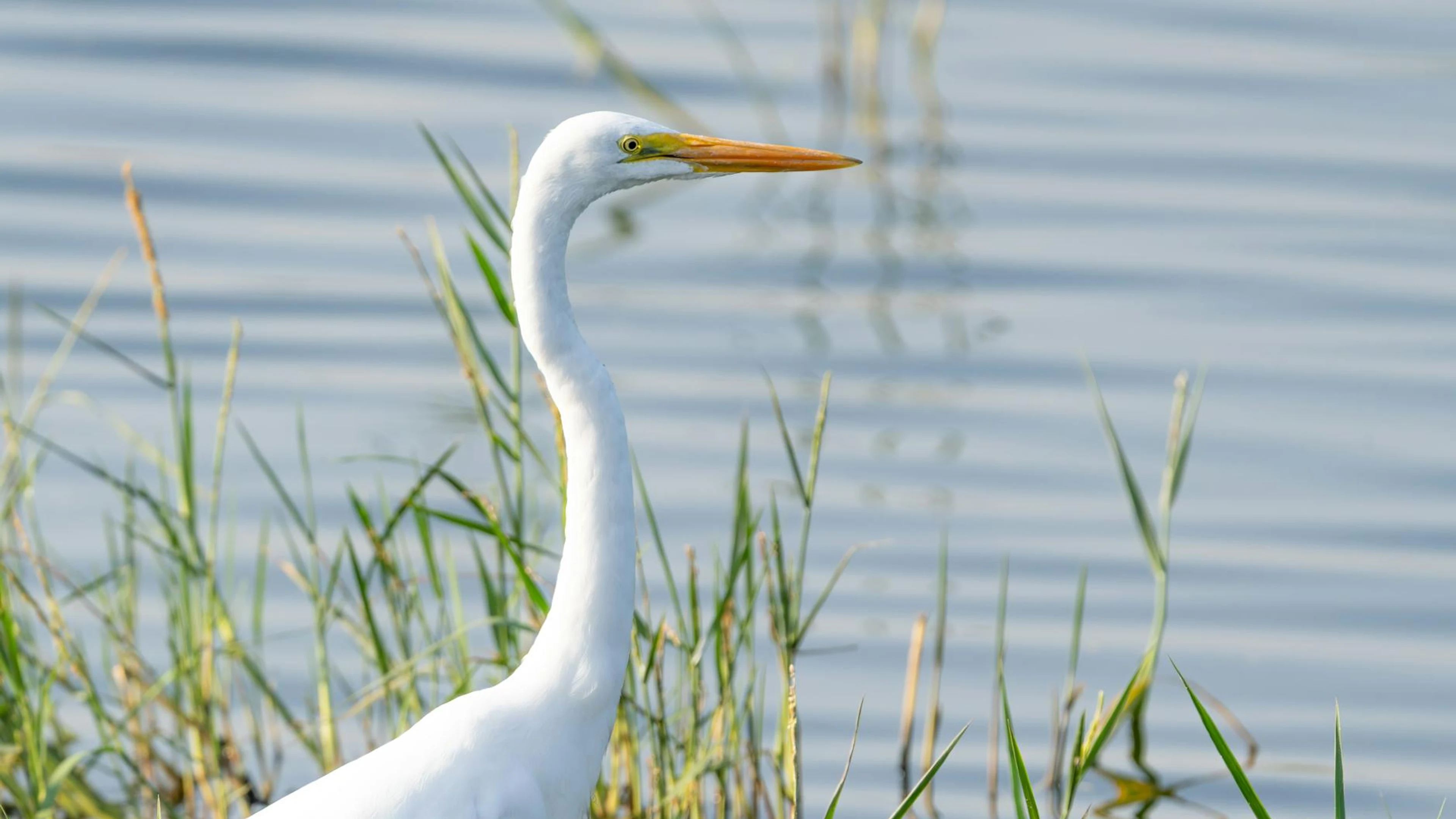 Download A majestic great egret stands gracefully in coastal wetlands, showcasing nature' wallpaper for free. 3840x2160 4K Ultra HD resolution, perfect for your desktop. High quality gaming wallpaper.