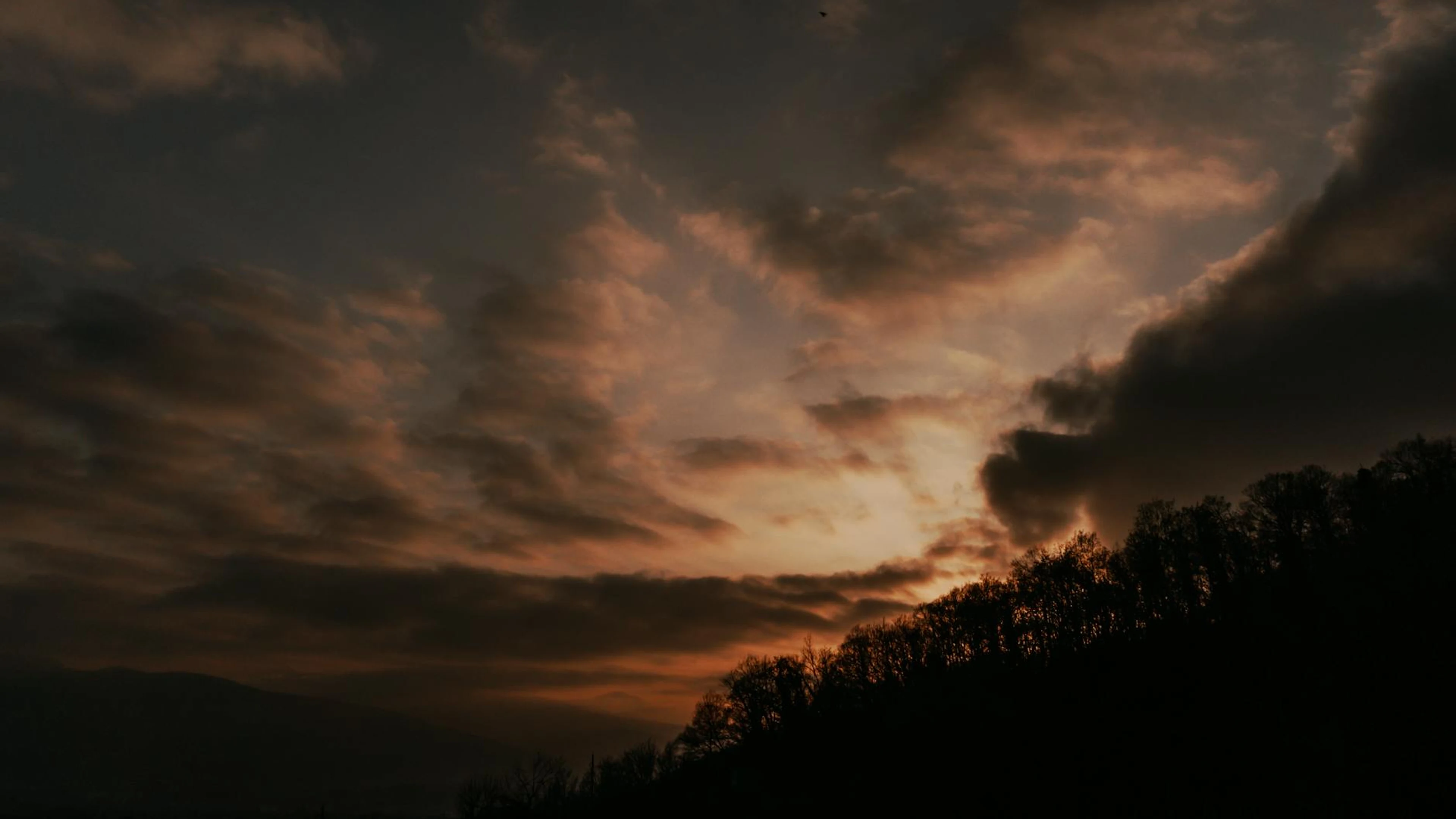 Get this stunning A mesmerizing sunset with dramatic clouds and silhouetted trees on the horizon. wallpaper in 4K Ultra HD quality. 3840x2160 sunset wallpaper available for free download.
