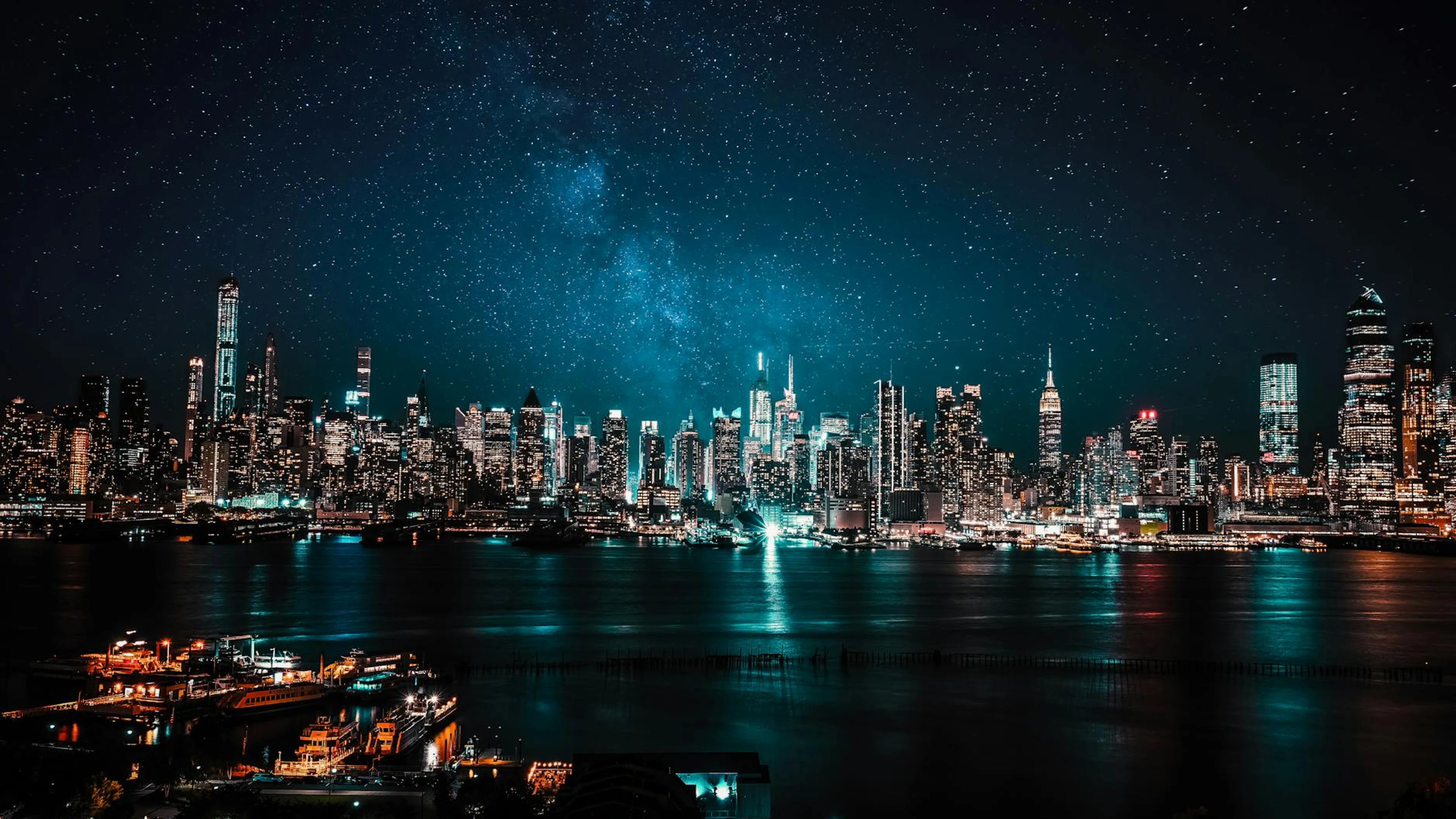 Get this stunning A mesmerizing view of New York City's illuminated skyline under a starry night s wallpaper in 4K Ultra HD quality. 3840x2160 city wallpaper available for free download.