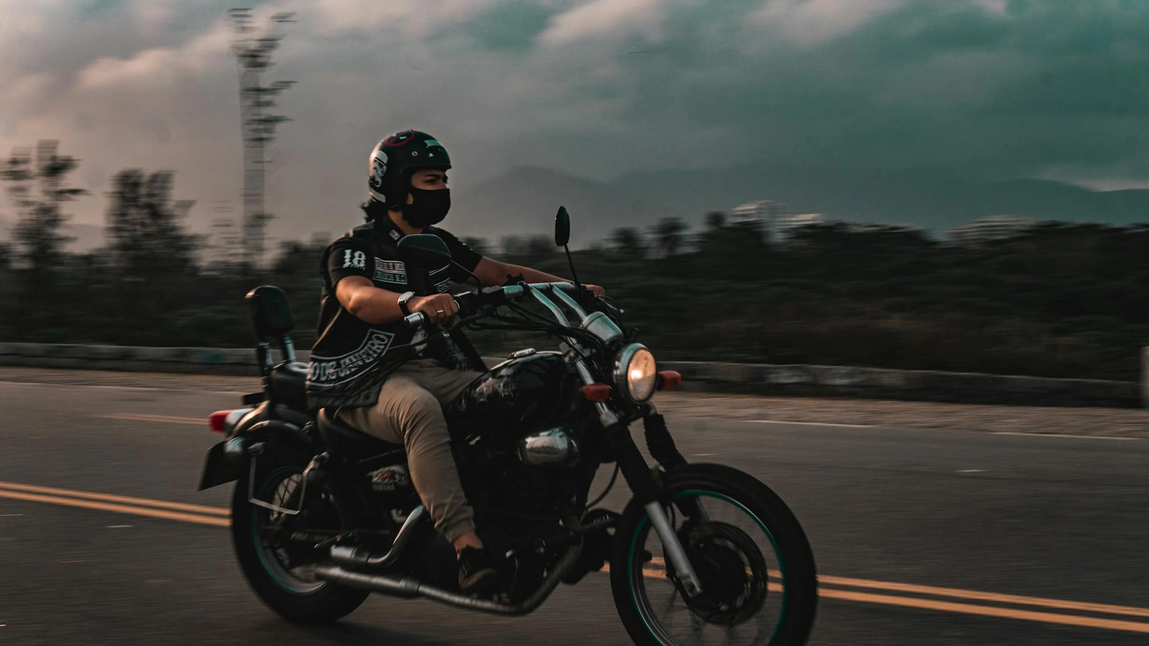 Get this stunning A motorcycle rider cruising down a deserted road at twilight with scenic mountai wallpaper in 4K Ultra HD quality. 3840x2160 motorcycle wallpaper available for free download.