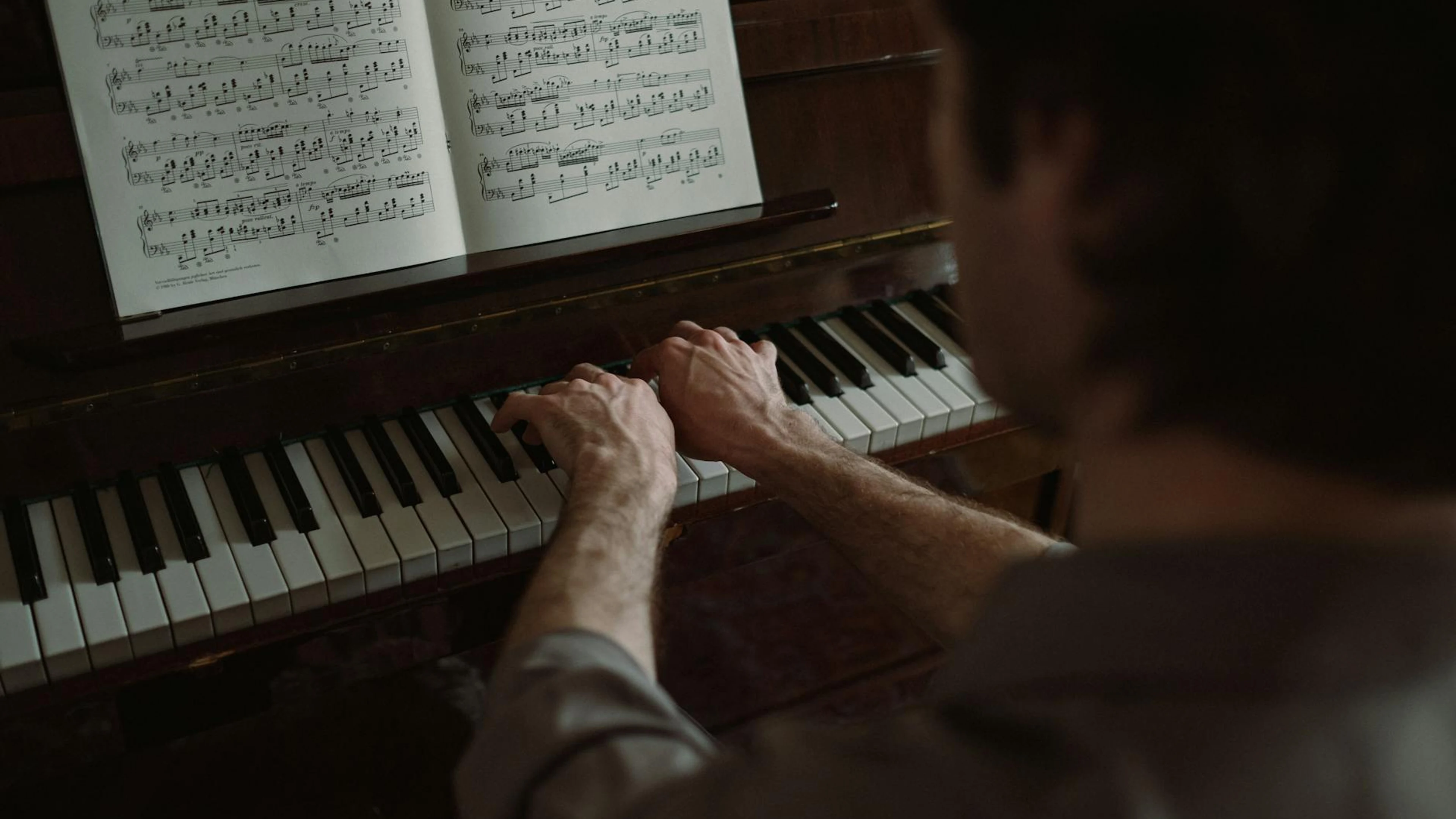 Download A musician playing piano with sheet music on display for perfect harmony. wallpaper for free. 3840x2160 4K Ultra HD resolution, perfect for your desktop. High quality music wallpaper.
