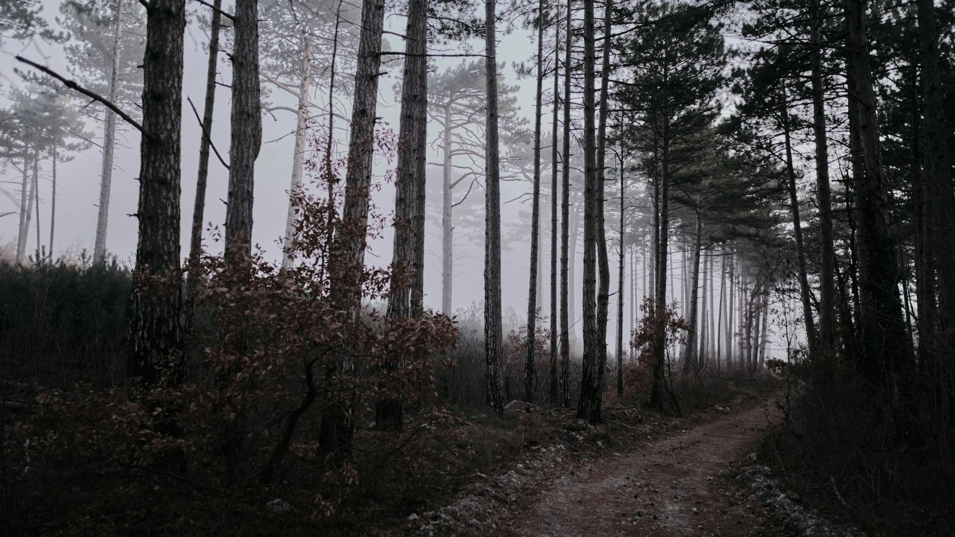 Get this stunning A mystical forest path enveloped in fog, offering a tranquil nature walk through wallpaper in 4K Ultra HD quality. 3840x2160 fantasy wallpaper available for free download.