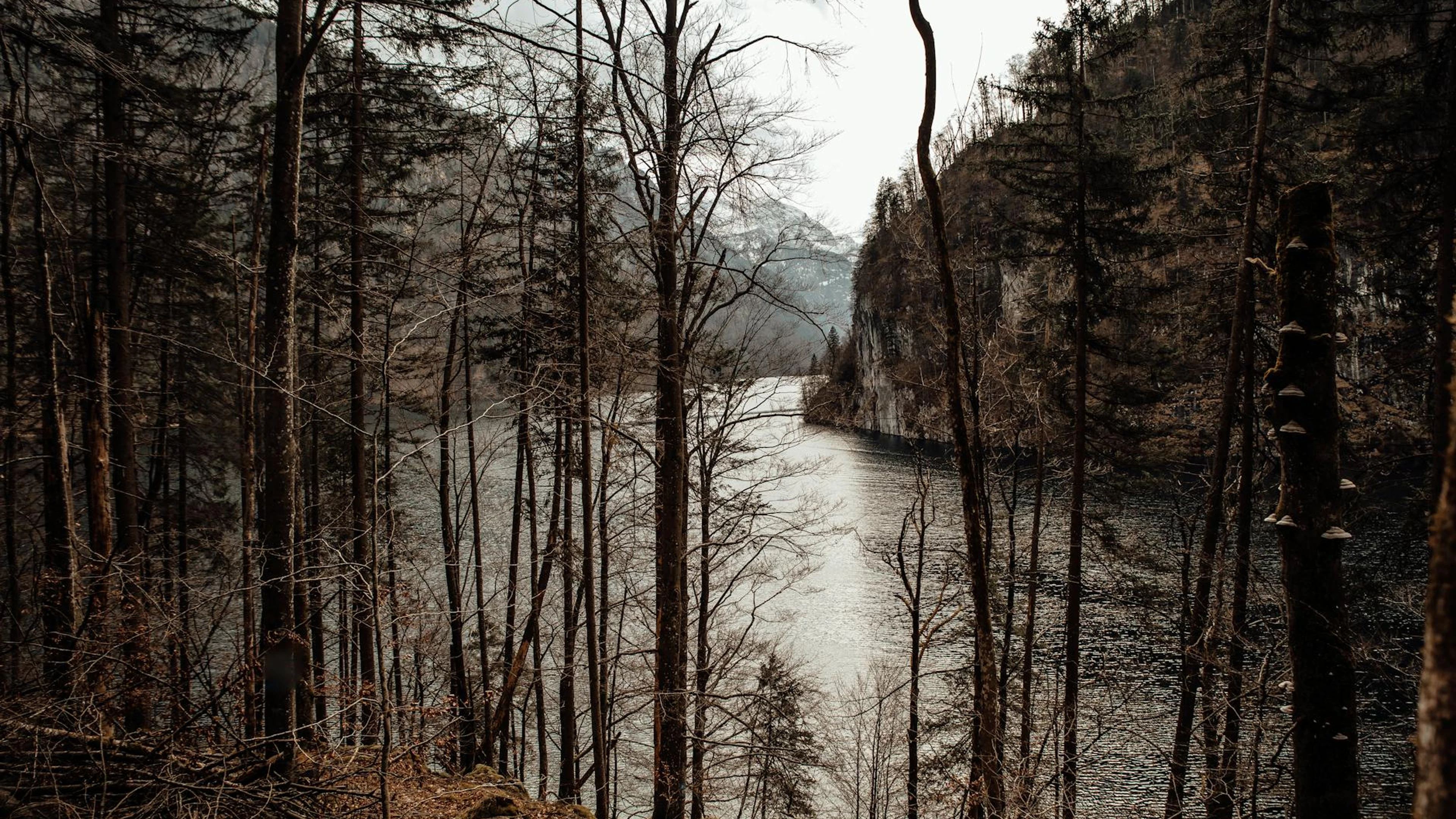 Free A peaceful scene of forest trees overlooking a tranquil lake in Bayern, Germany. wallpaper in 4K Ultra HD resolution (3840x2160). Beautiful mountain background for your screen. No signup required.