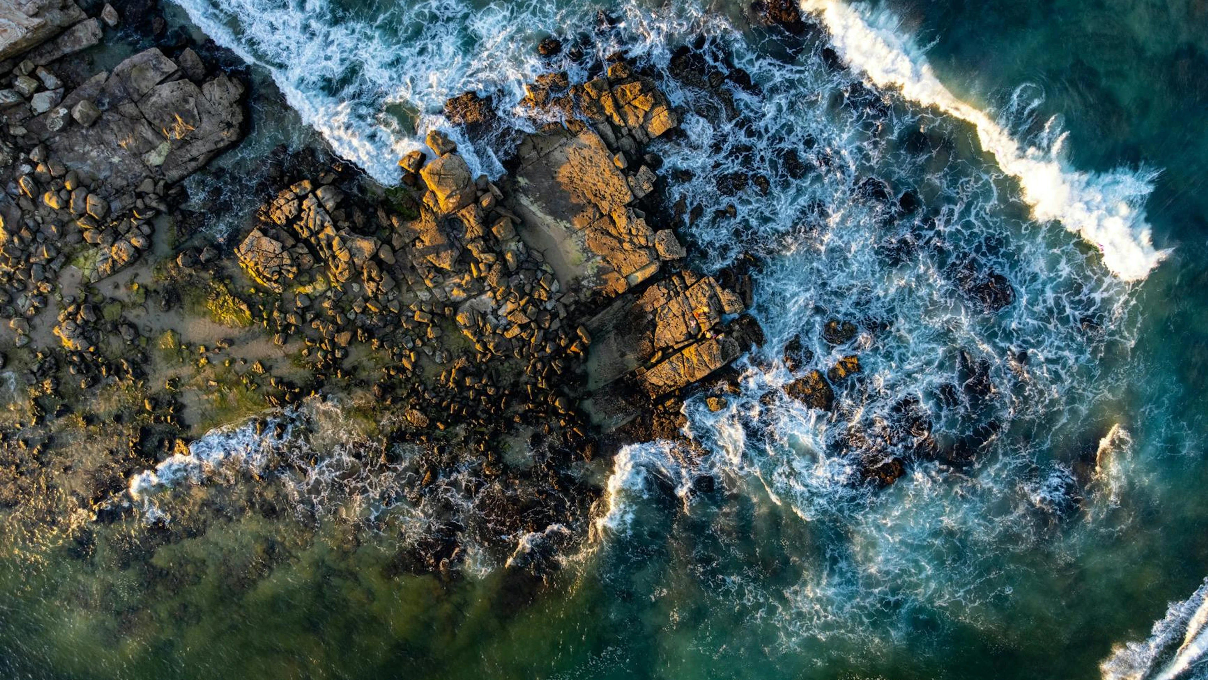 Free A stunning aerial shot of rocky coastline with waves crashing in Maroochydore, A wallpaper in 4K Ultra HD resolution (3840x2160). Beautiful ocean background for your screen. No signup required.