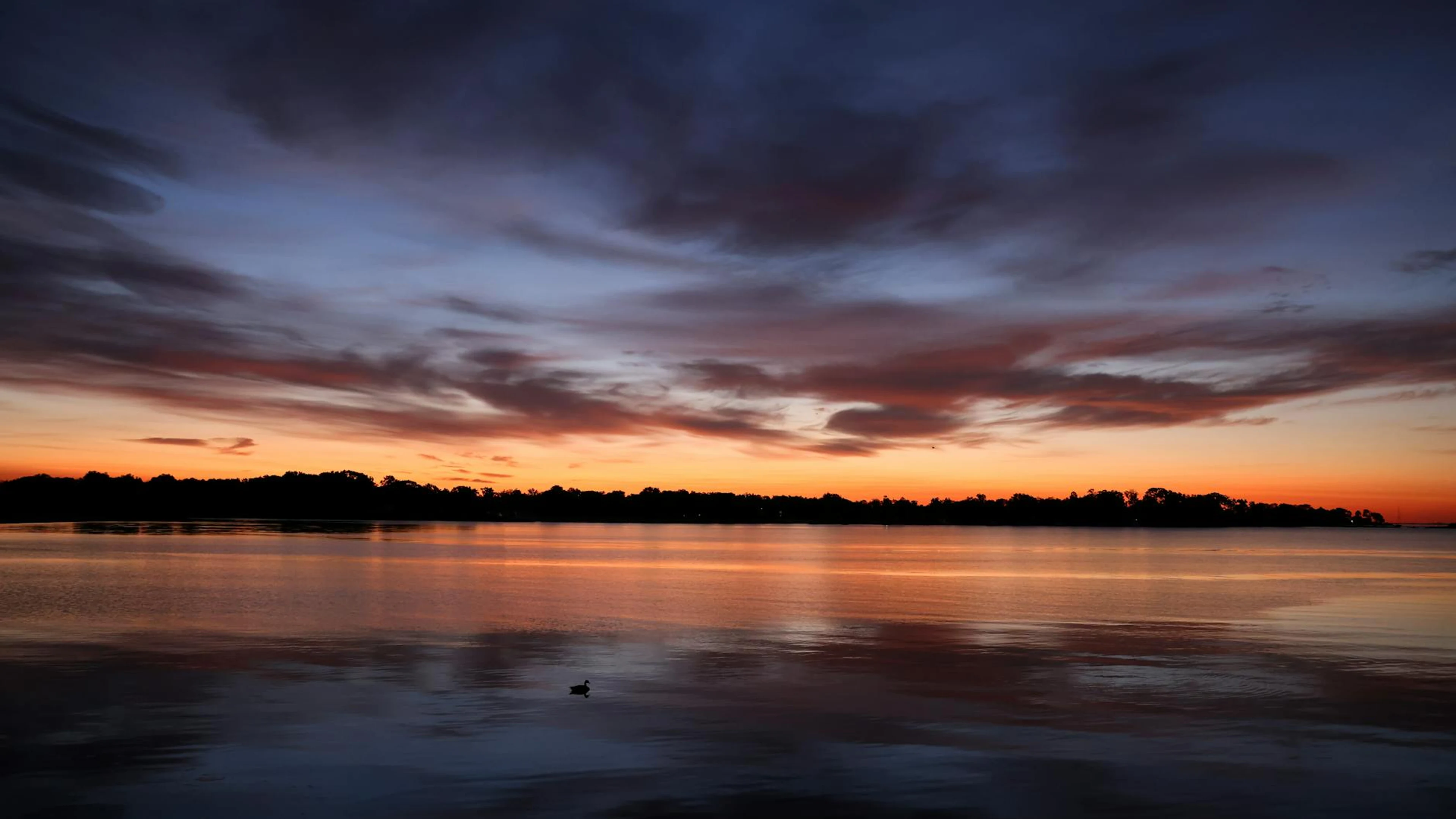 Free A tranquil sunset with vibrant clouds reflected on a calm lake, creating a seren wallpaper in 4K Ultra HD resolution (3840x2160). Beautiful lake background for your screen. No signup required.