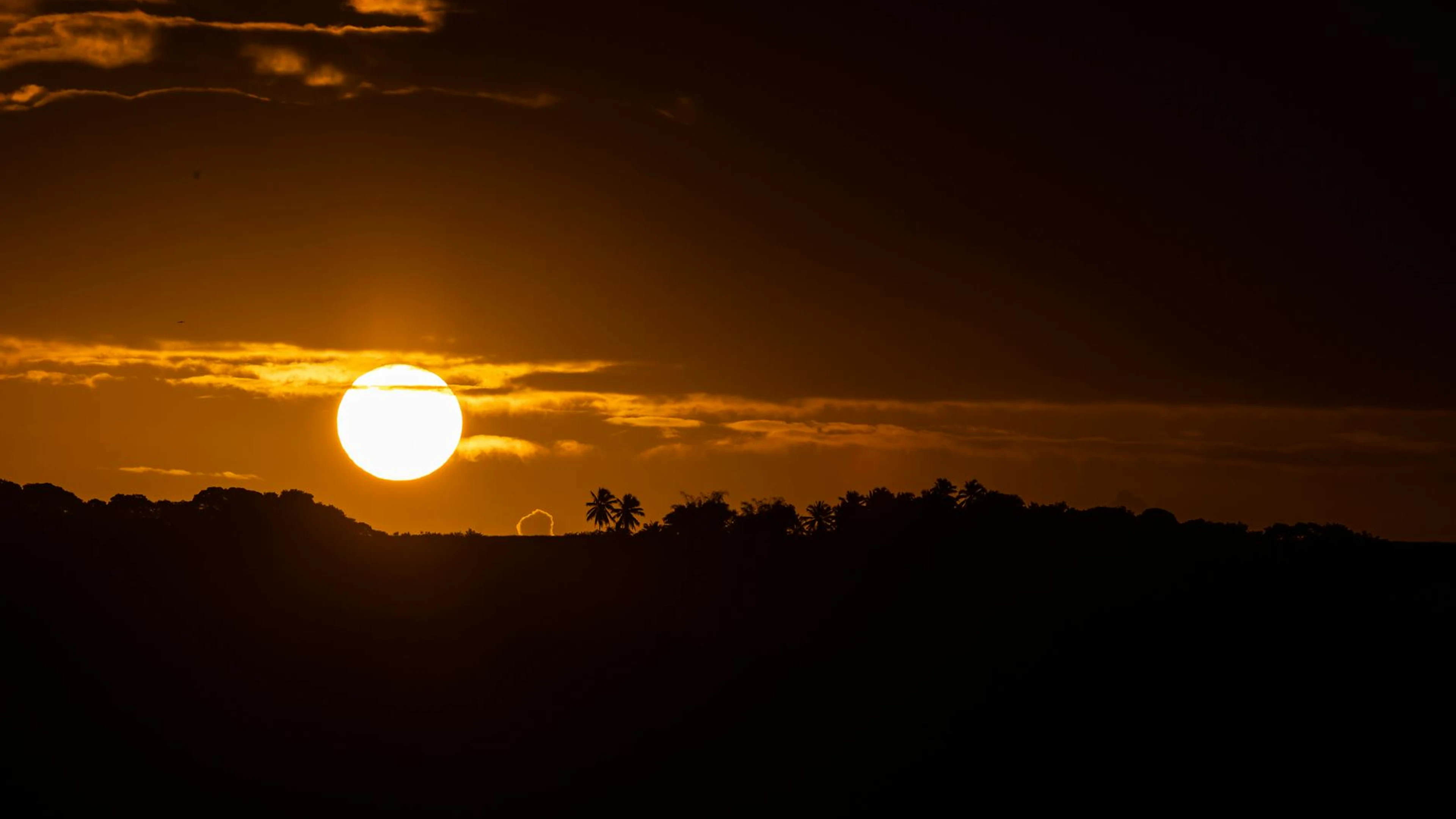 Download A vibrant golden sunset casting a silhouette over a serene landscape with palm t wallpaper for free. 3840x2160 4K Ultra HD resolution, perfect for your desktop. High quality sunset wallpaper.