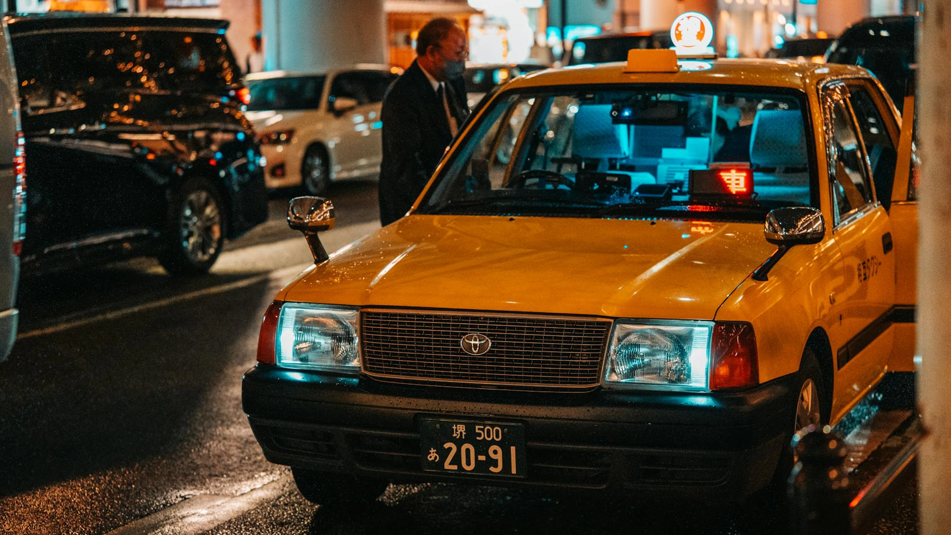 Download A vibrant night scene of a yellow taxi in Dotonbori, Osaka, capturing the city's wallpaper for free. 3840x2160 4K Ultra HD resolution, perfect for your desktop. High quality city wallpaper.