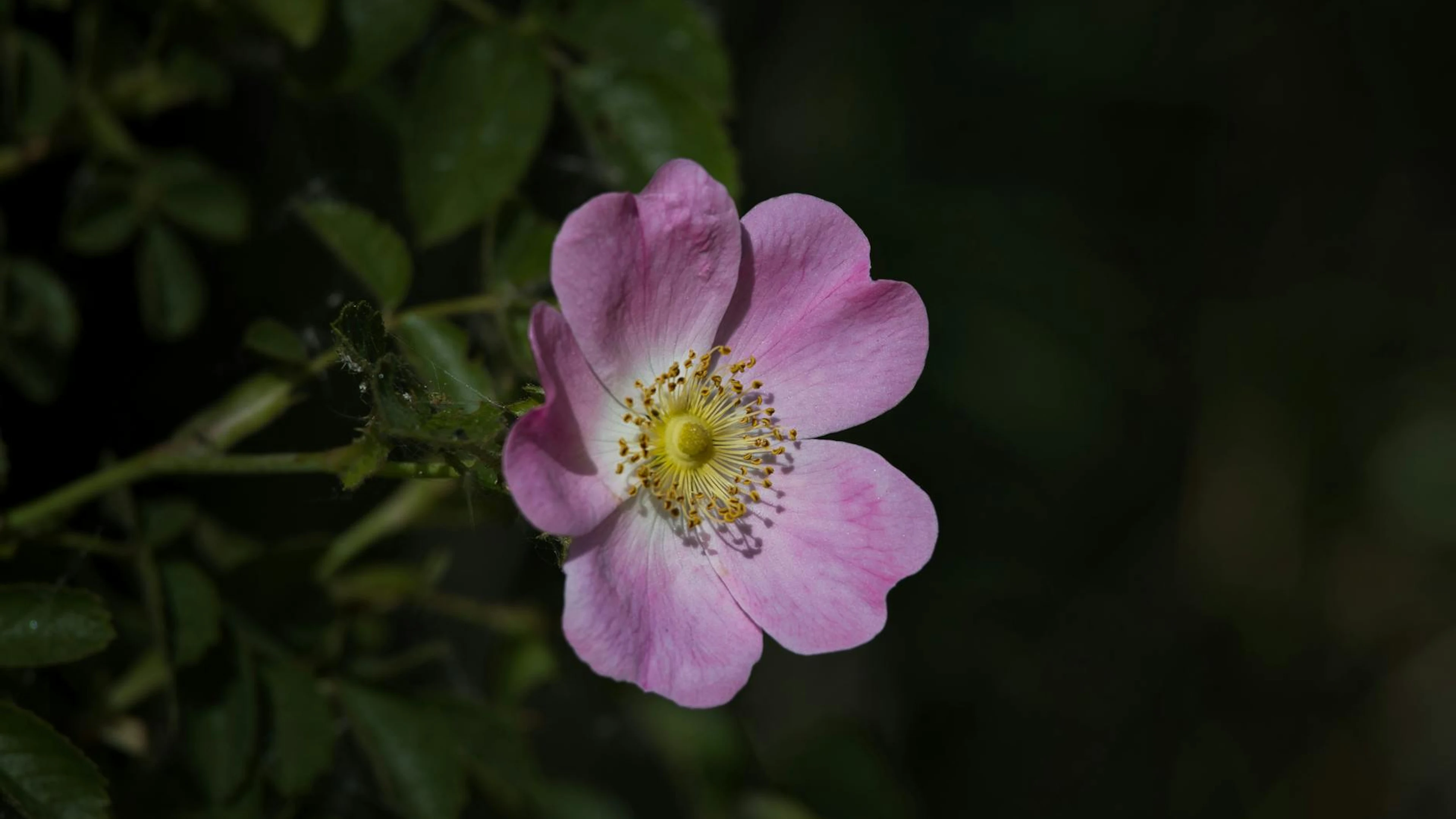 Get this stunning A vivid close-up of a single pink eglantine flower with lush green leaves in nat wallpaper in 4K Ultra HD quality. 3840x2160 flowers wallpaper available for free download.
