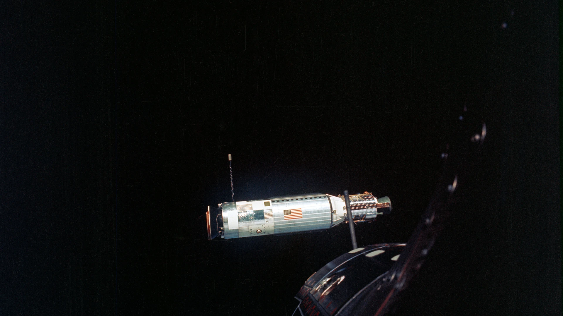 Download Agena Target Docking Vehicle photographed from Gemini 10 spacecraft wallpaper for free. 1920x1080 tablet resolution, perfect for your desktop. High quality space wallpaper.