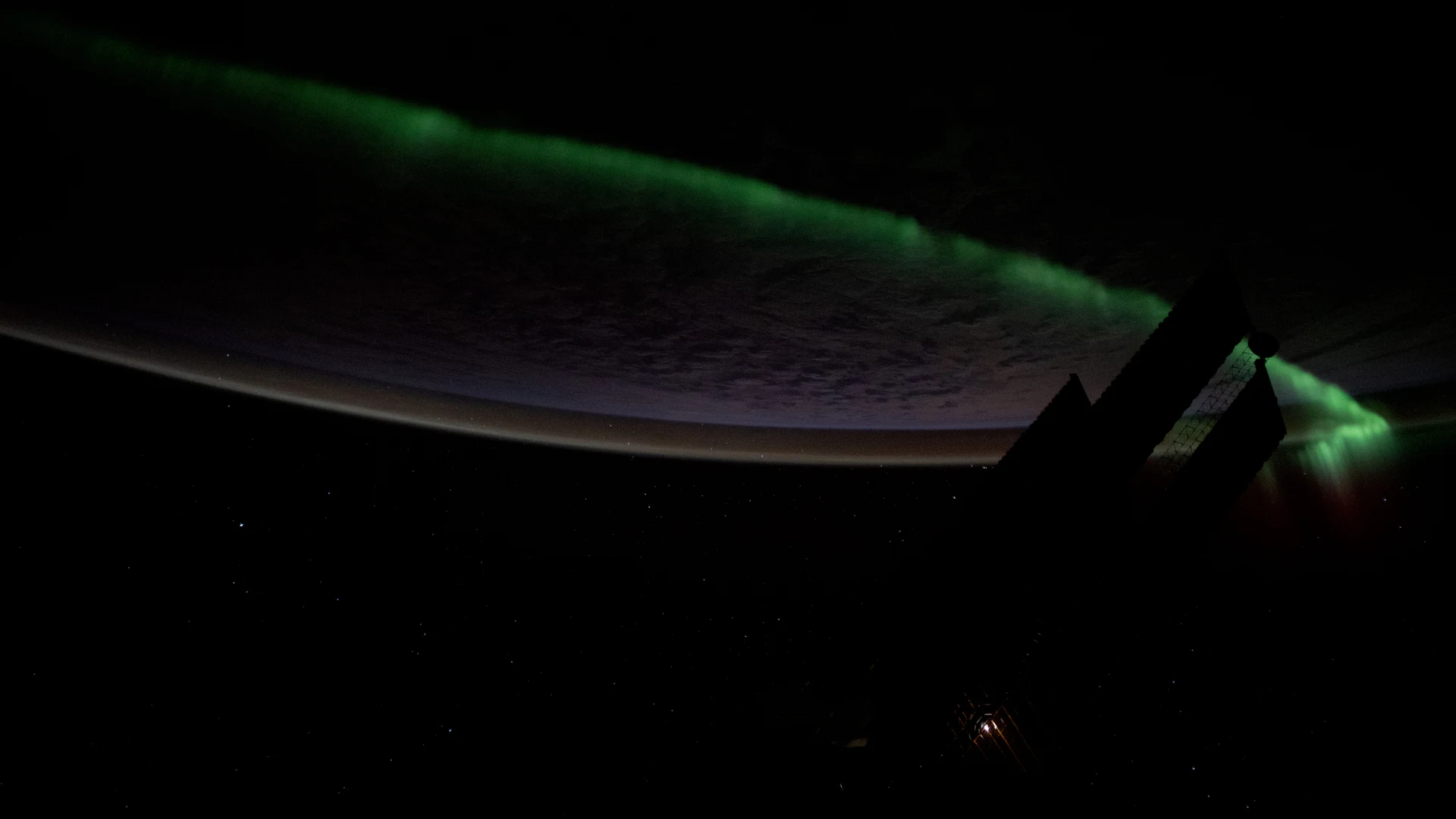 Download An atmospheric glow crowns Earth's horizon as an aurora streams wallpaper for free. 1920x1080 tablet resolution, perfect for your desktop. High quality space wallpaper.