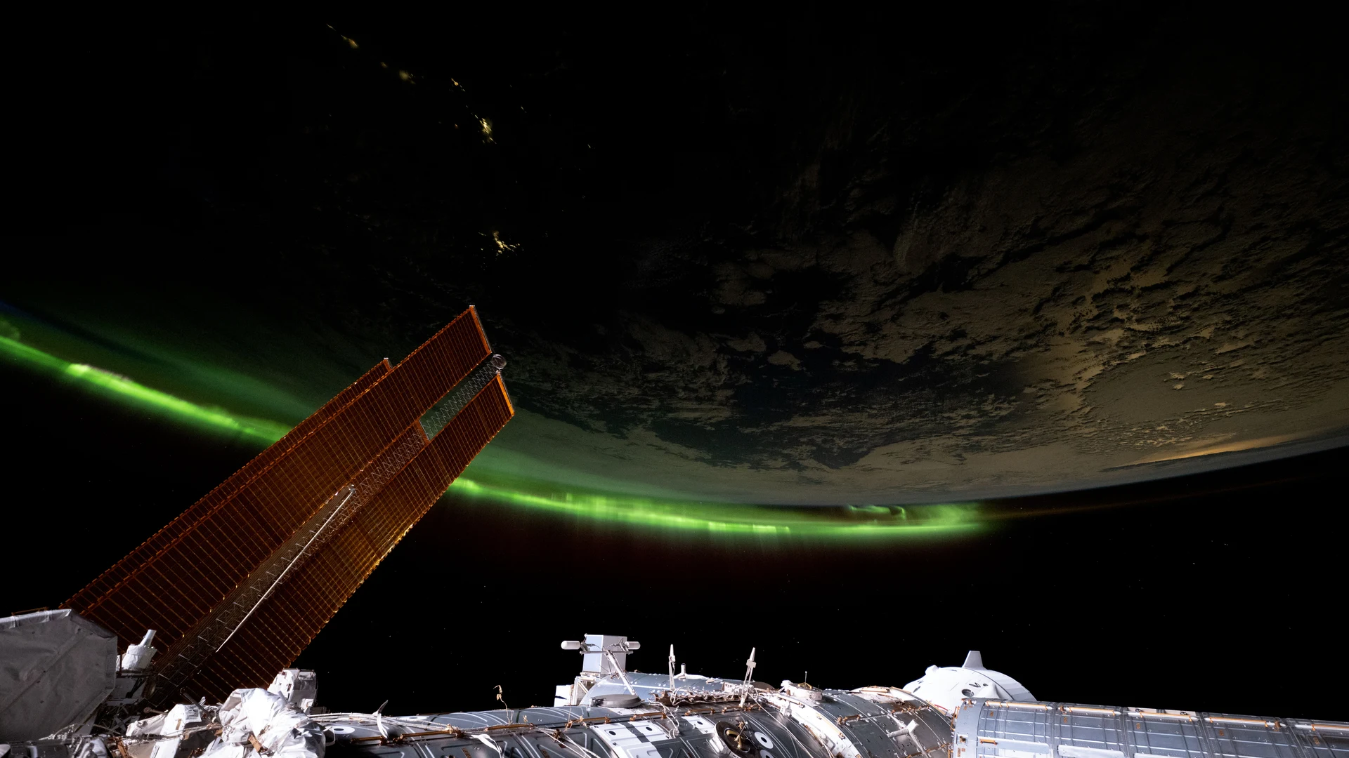 Download An aurora streams across Earth's horizon wallpaper for free. 1920x1080 tablet resolution, perfect for your desktop. High quality space wallpaper.