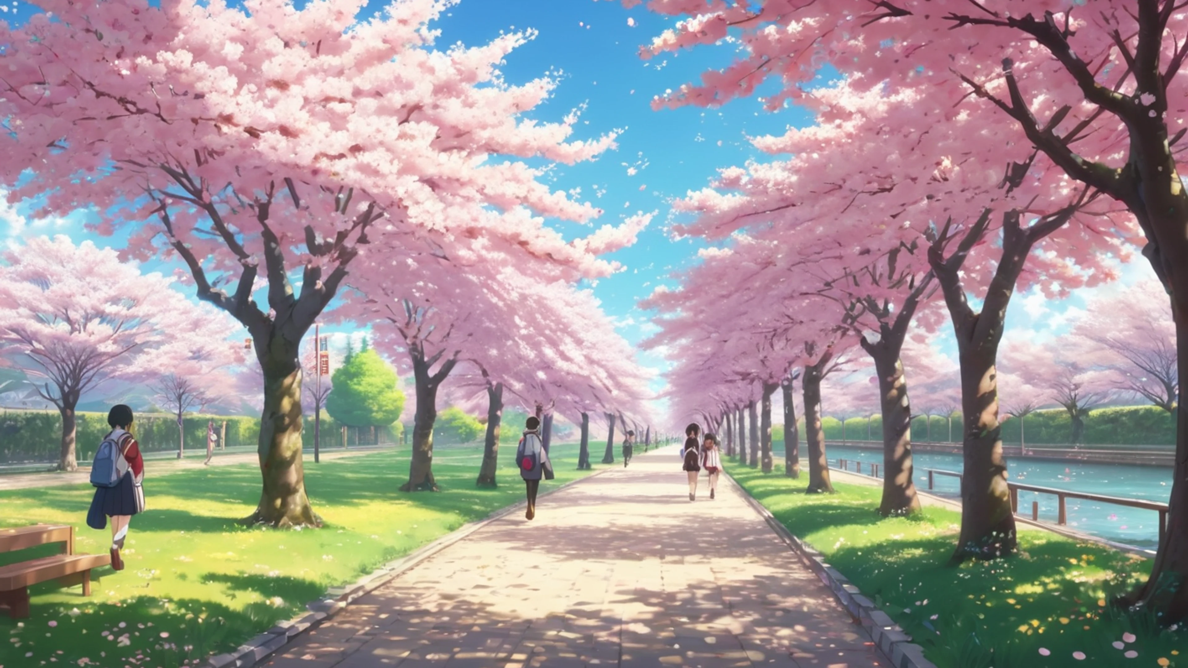 Download Anime Cherry Blossom School wallpaper for free. 3840x2160 4K Ultra HD resolution, perfect for your desktop. High quality anime wallpaper.