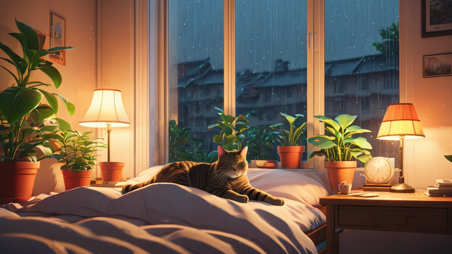 Anime Cozy Room Rainy Day