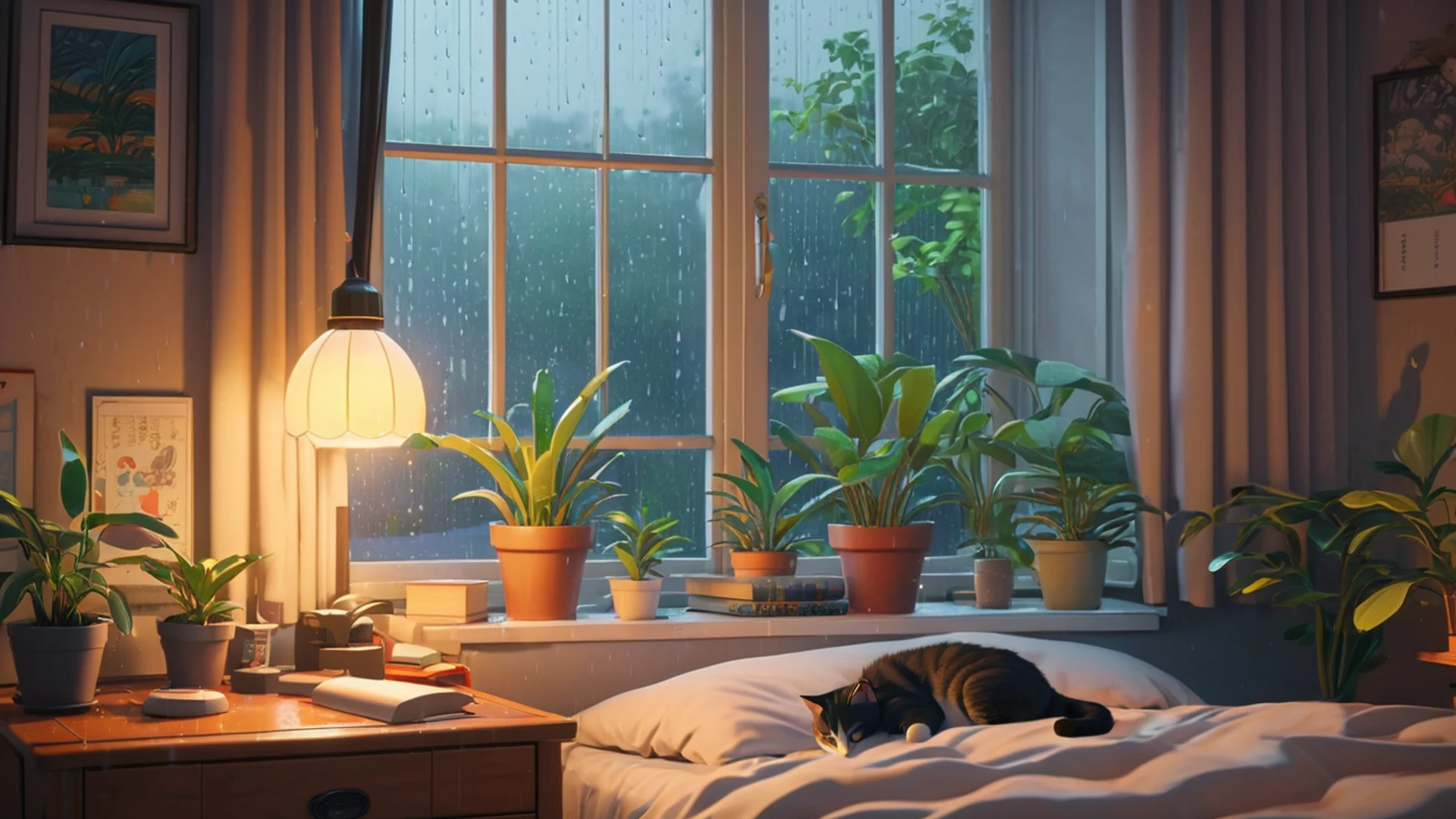 Anime Cozy Room Rainy Day
