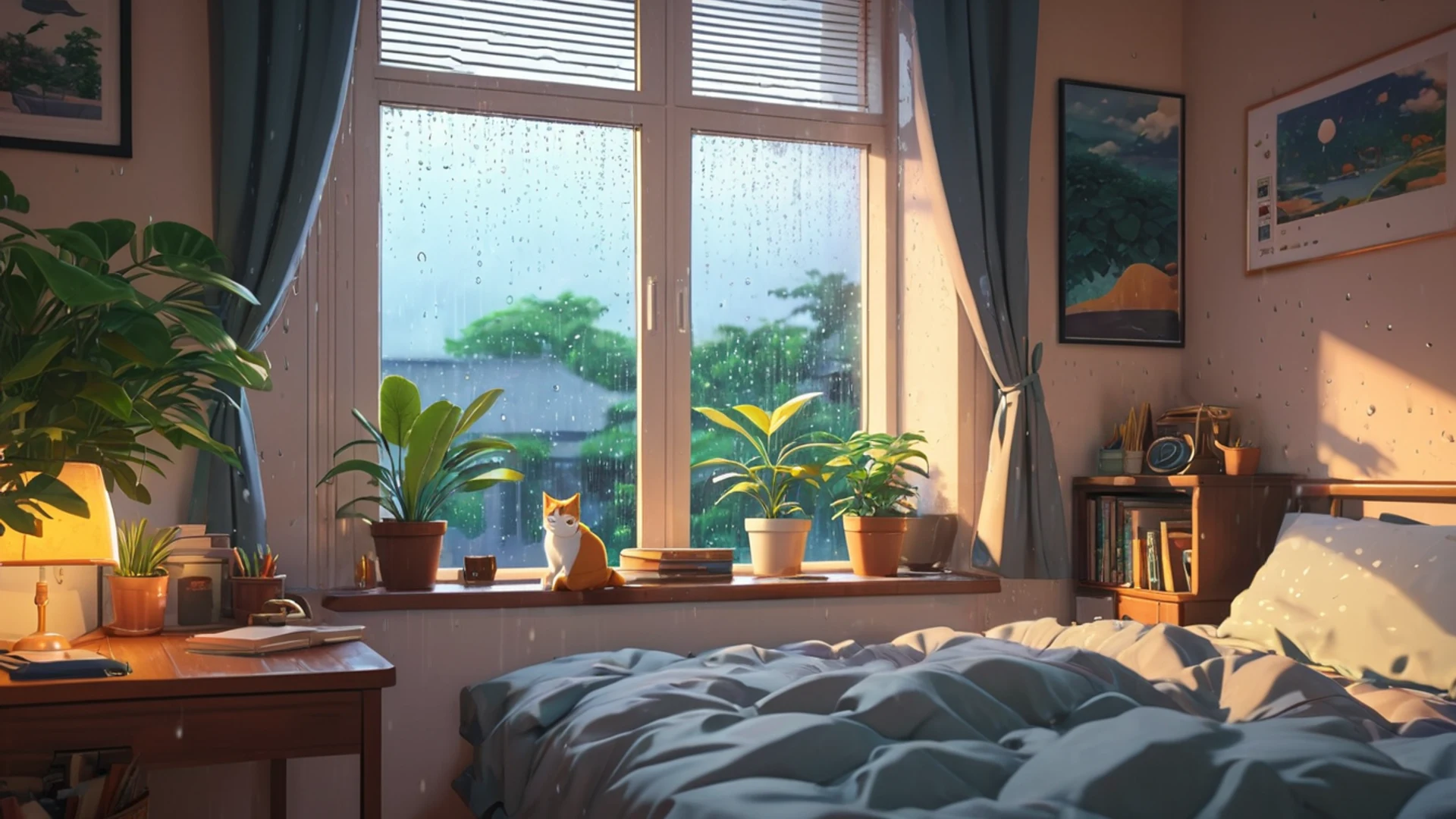 Anime Cozy Room Rainy Day