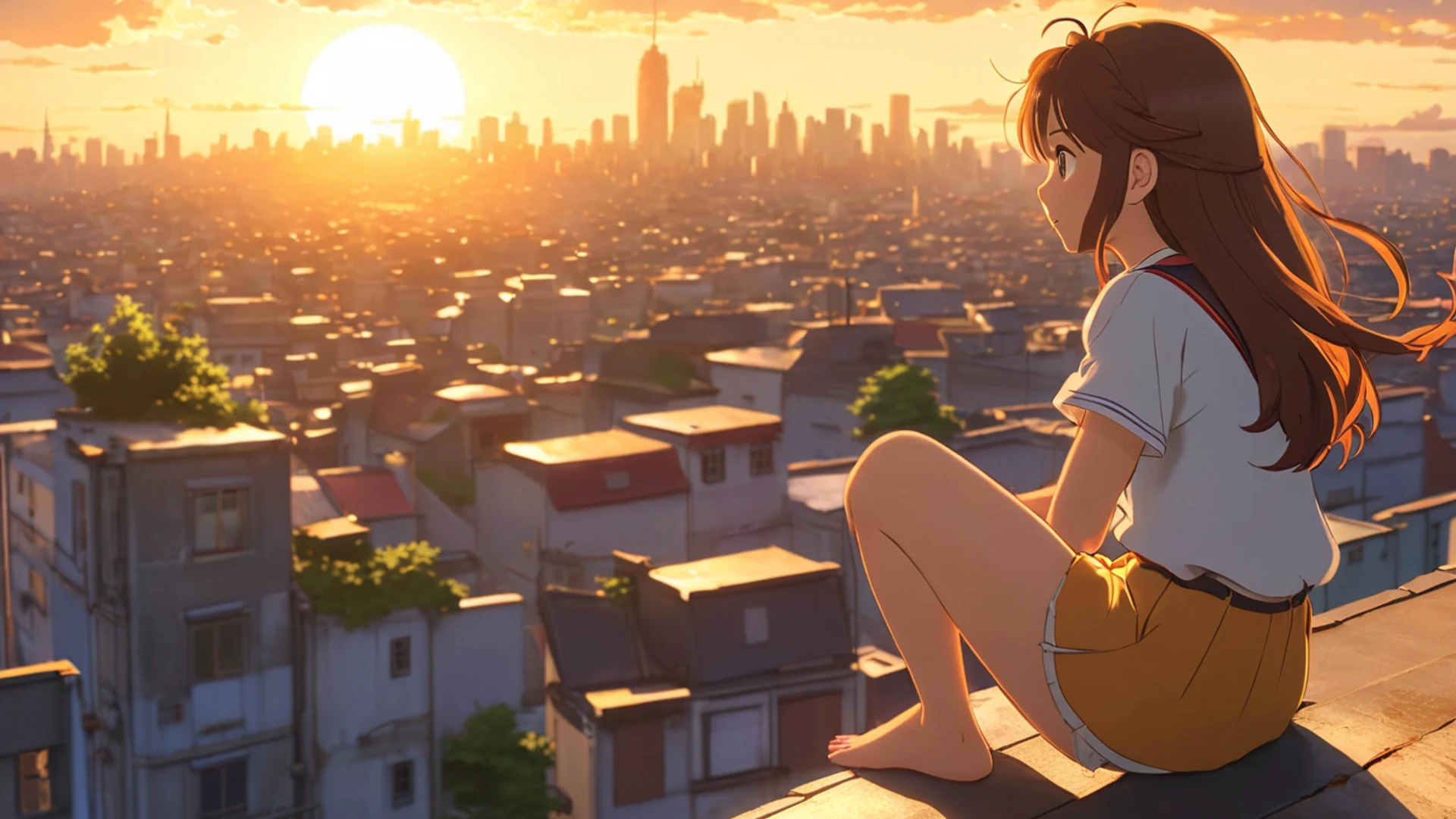 Anime Girl Watching Sunset City - free hd anime wallpaper for desktop