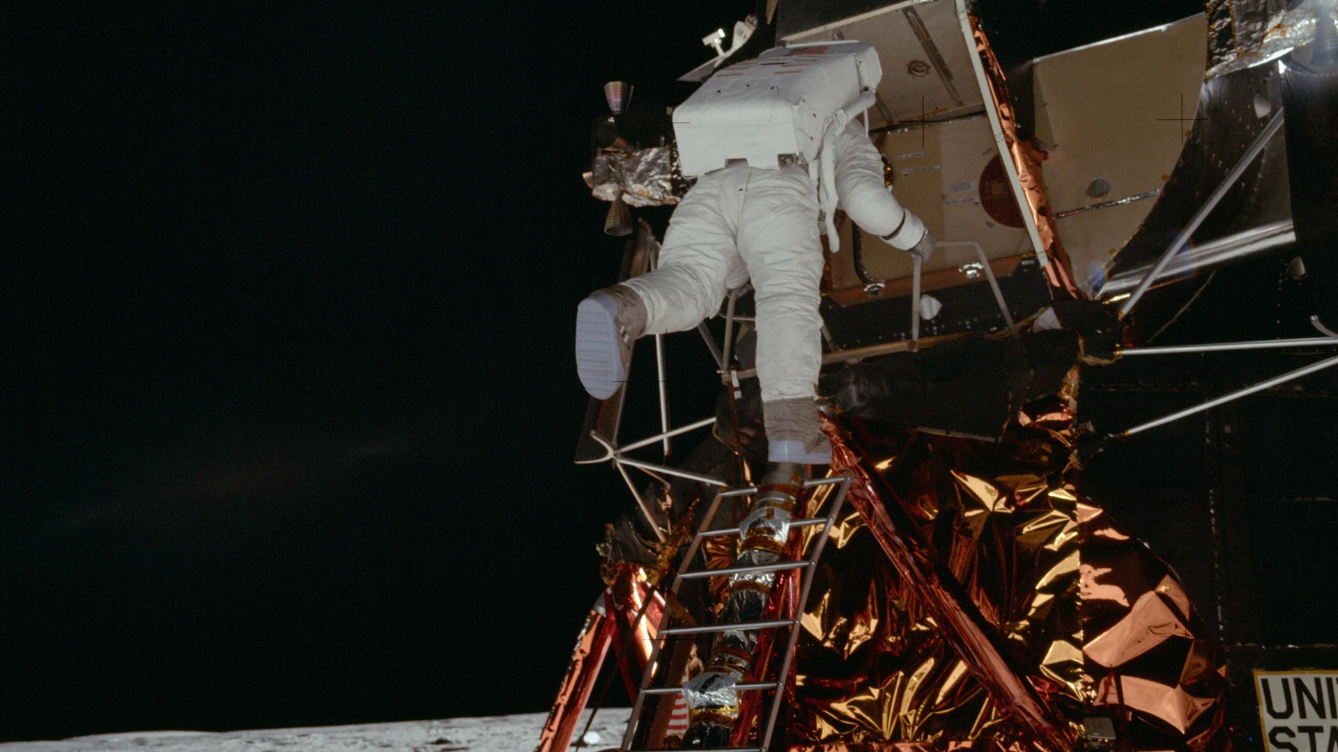 Download Apollo 11 Mission image - Astronaut Edwin Aldrin descends the Lu wallpaper for free. 1920x1080 tablet resolution, perfect for your desktop. High quality space wallpaper.
