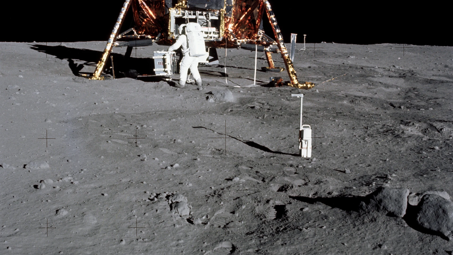 Get this stunning Astronaut Edwin Aldrin prepares to deploy EASEP on surface of moon wallpaper in tablet quality. 1920x1080 space wallpaper available for free download.