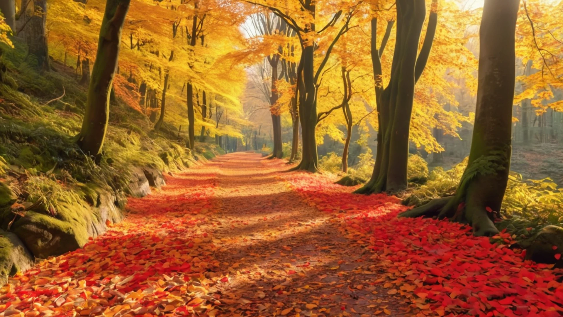 Get this stunning Autumn Forest Path wallpaper in tablet quality. 1920x1080 nature wallpaper available for free download.