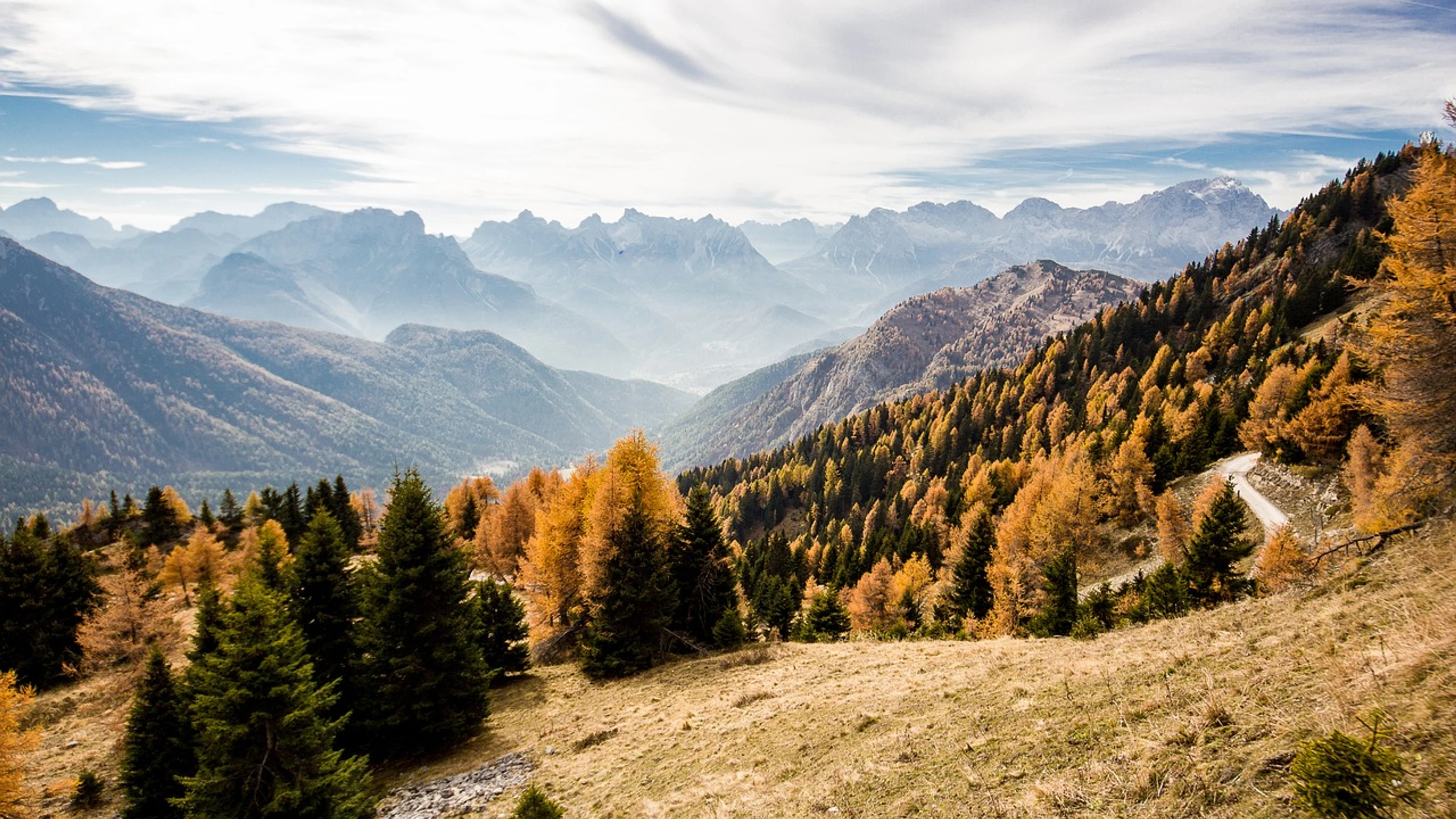 Download Autumn mountain pines wallpaper for free. 3840x2160 4K Ultra HD resolution, perfect for your desktop. High quality mountain wallpaper.