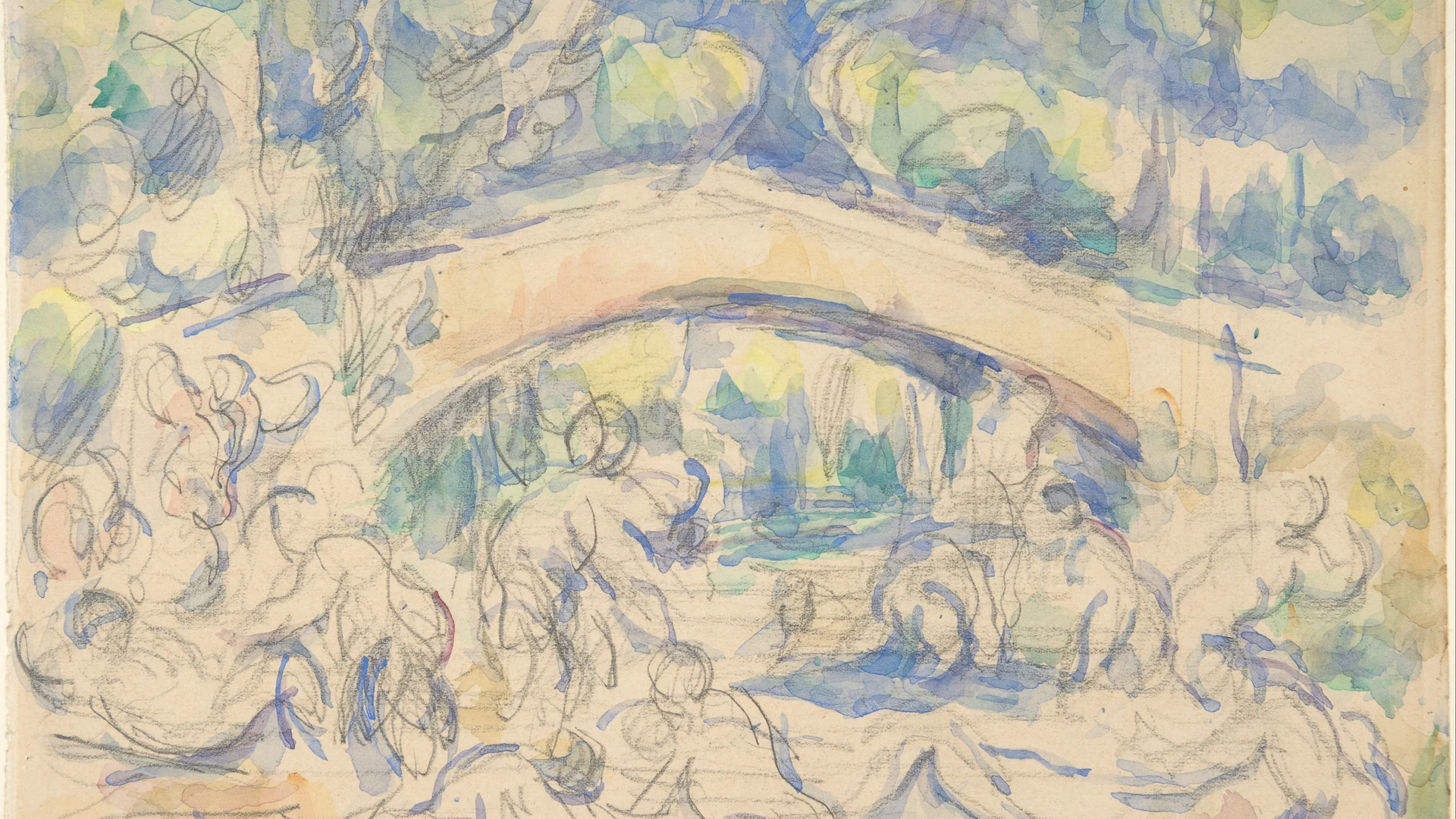 Free Bathers Under a Bridge (recto); Study after Houdon's Ecorché (verso) wallpaper in tablet resolution (1920x1080). Beautiful abstract background for your screen. No signup required.