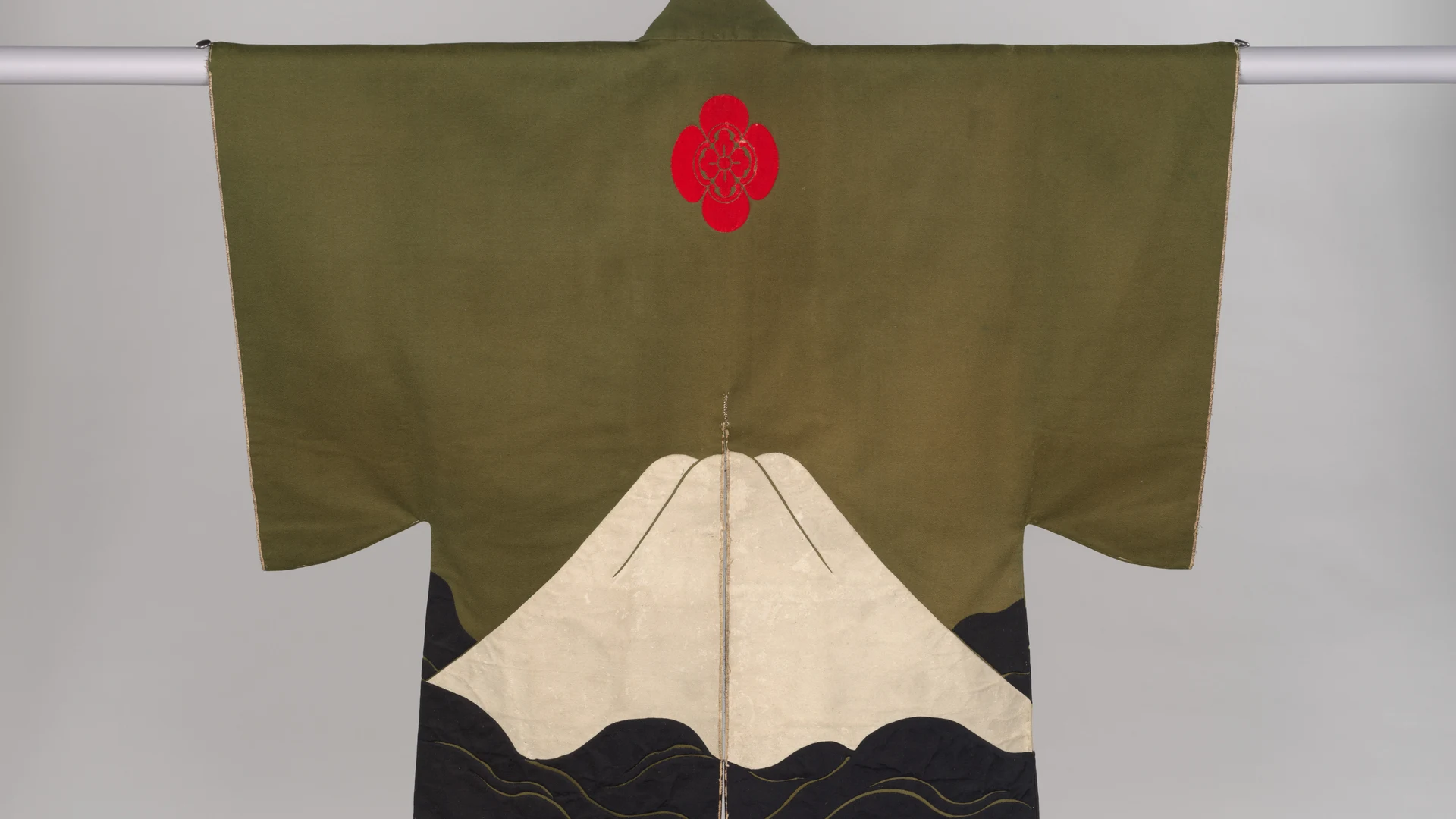 Battle surcoat (jinbaori) with Mount Fuji and waves