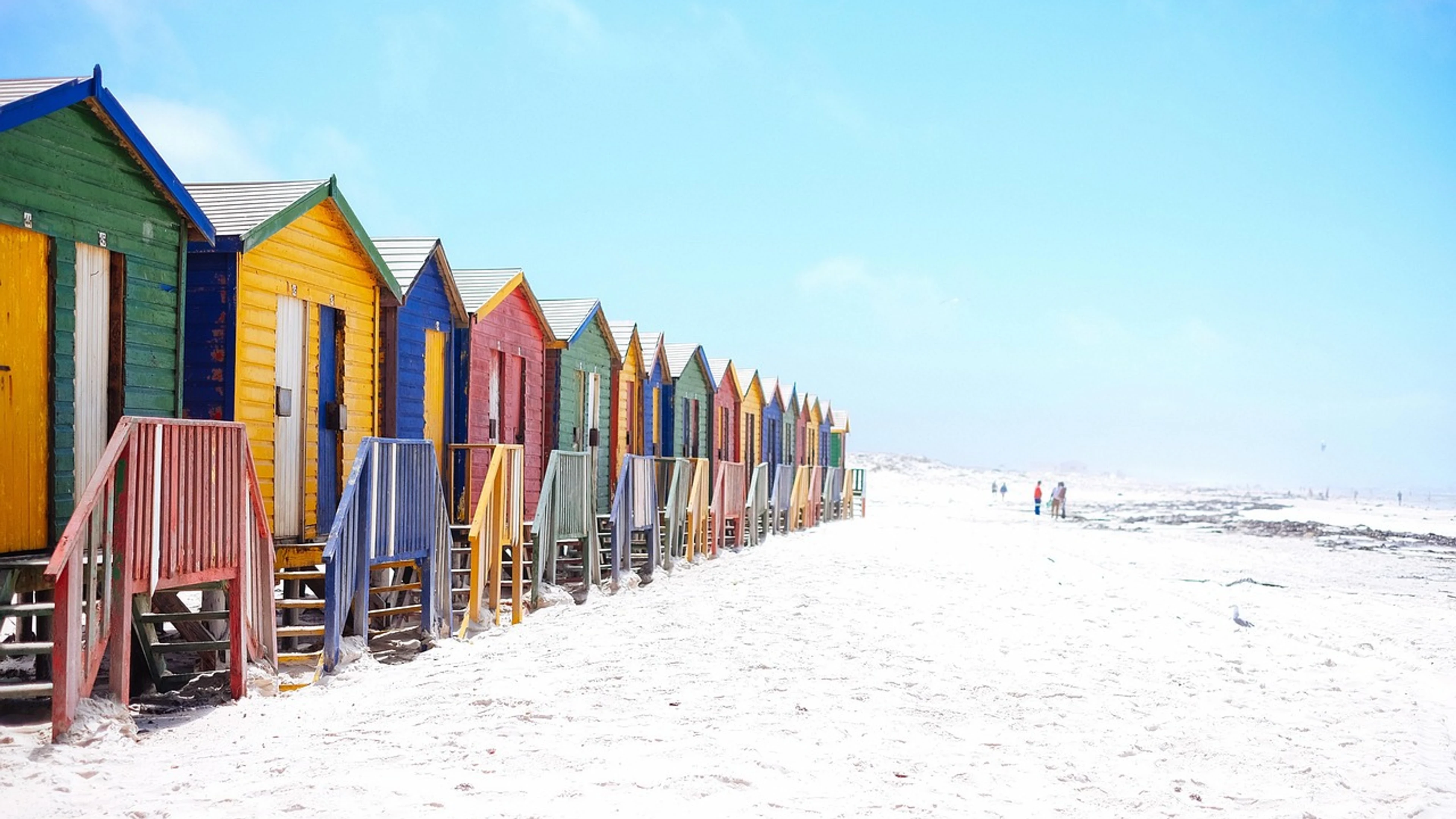 Free Beach beach huts colorful wallpaper in 4K Ultra HD resolution (3840x2160). Beautiful ocean background for your screen. No signup required.