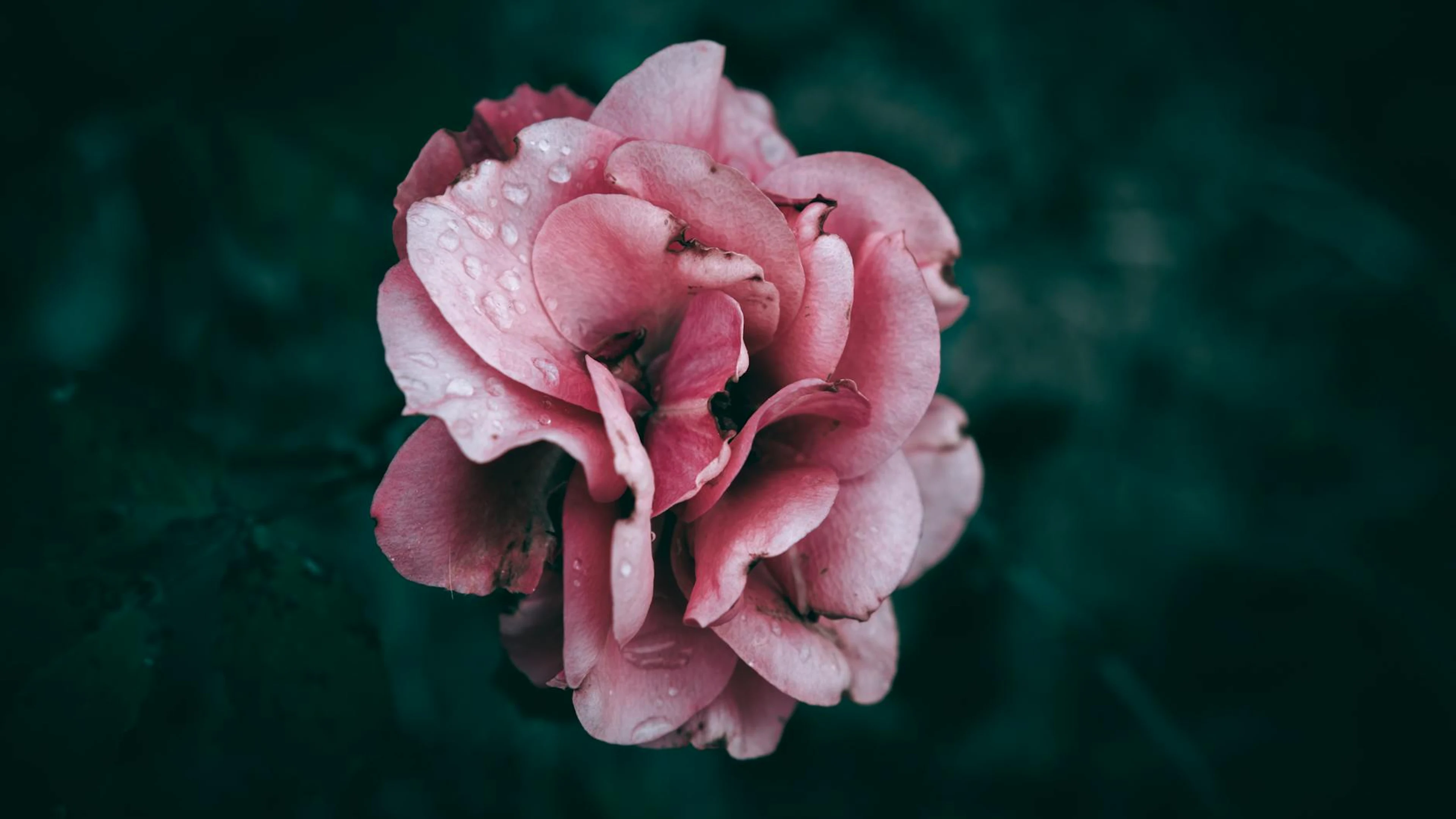 Get this stunning Beautiful close-up of a pink rose with dewdrops on petals against a dark backgro wallpaper in 4K Ultra HD quality. 3840x2160 dark wallpaper available for free download.