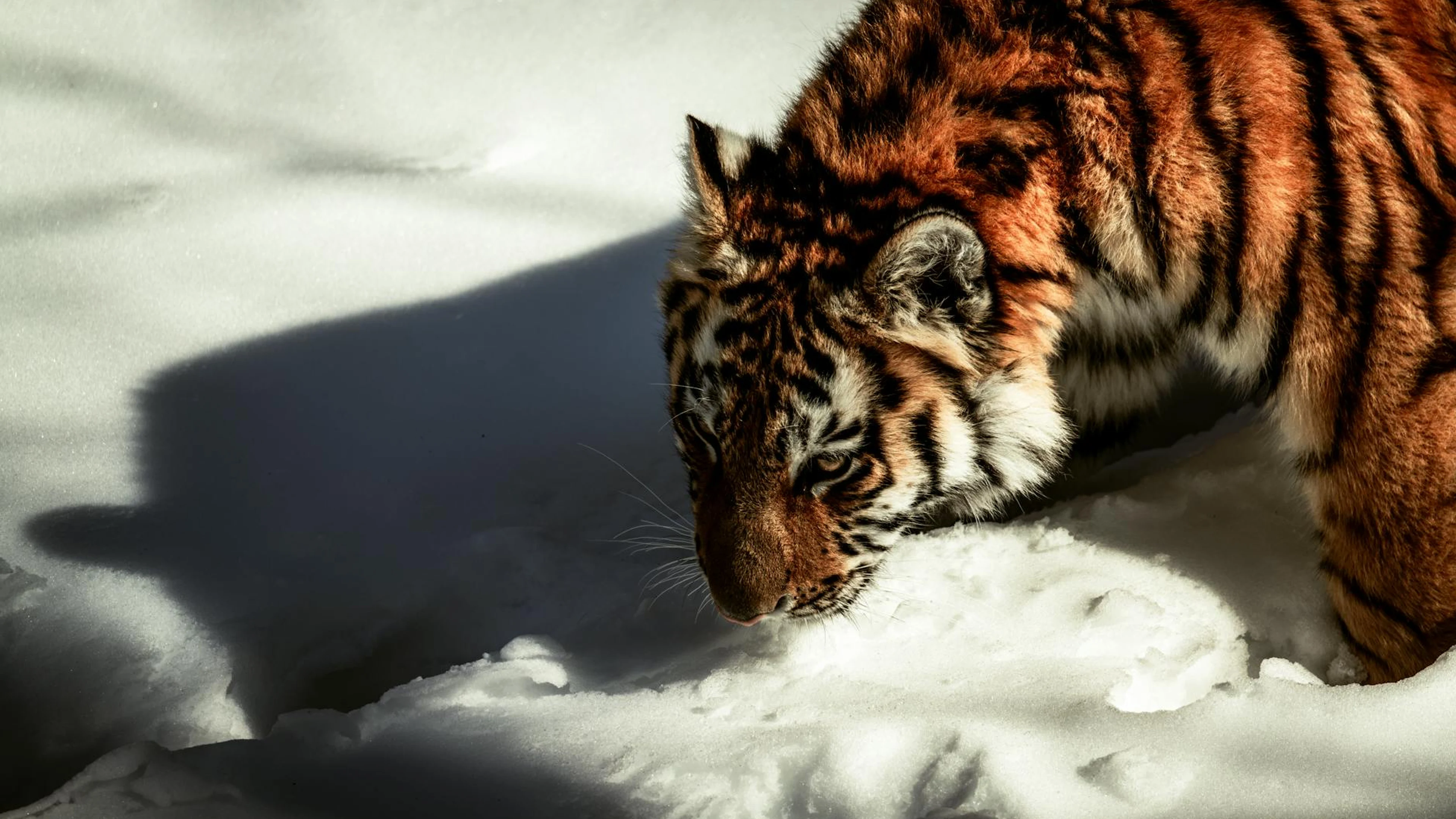 Download Beautiful tiger navigating through the snow, showcasing its majestic presence. wallpaper for free. 3840x2160 4K Ultra HD resolution, perfect for your desktop. High quality anime wallpaper.