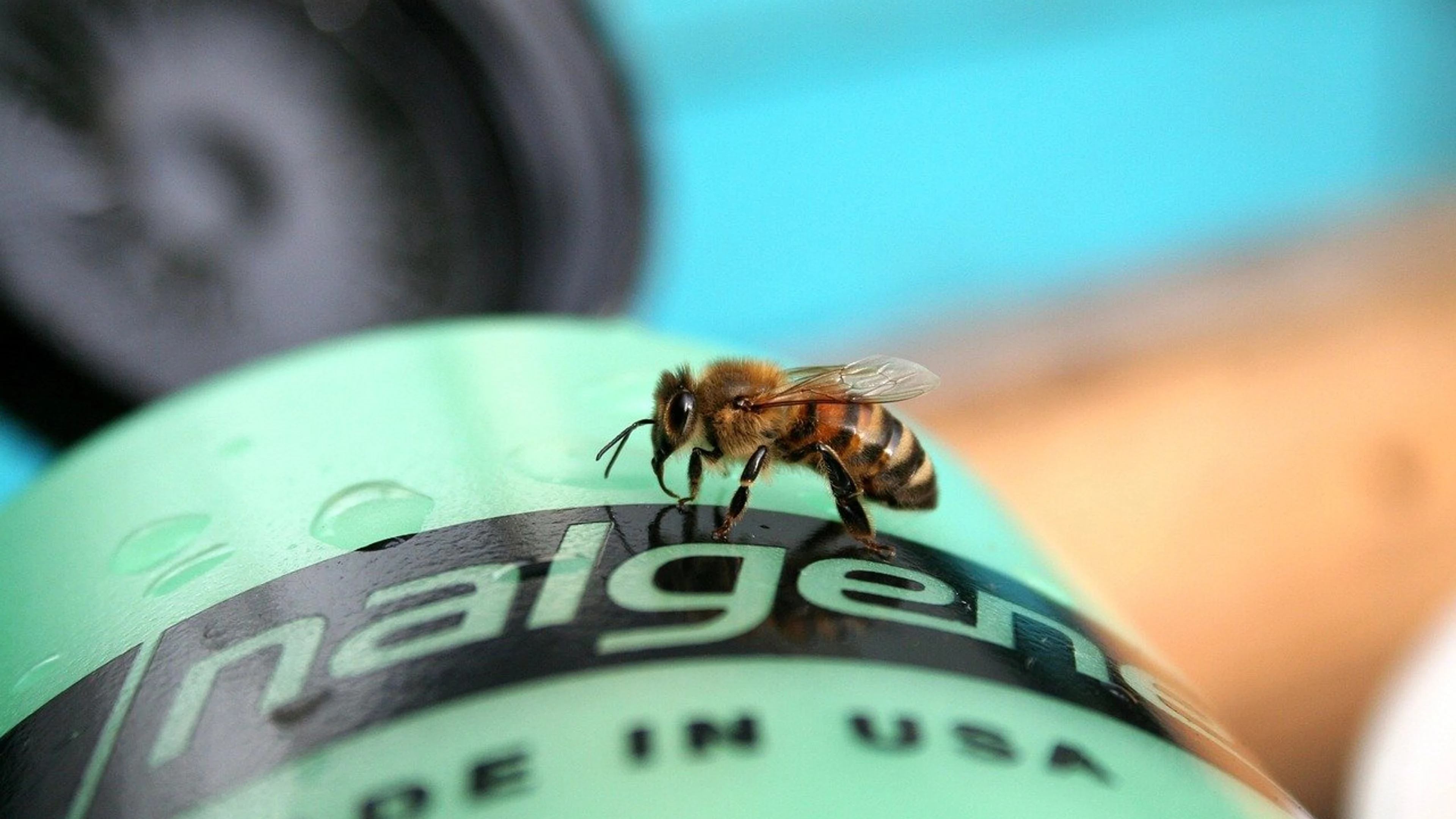 Download Bee insect canteen wallpaper for free. 3840x2160 4K Ultra HD resolution, perfect for your desktop. High quality macro wallpaper.