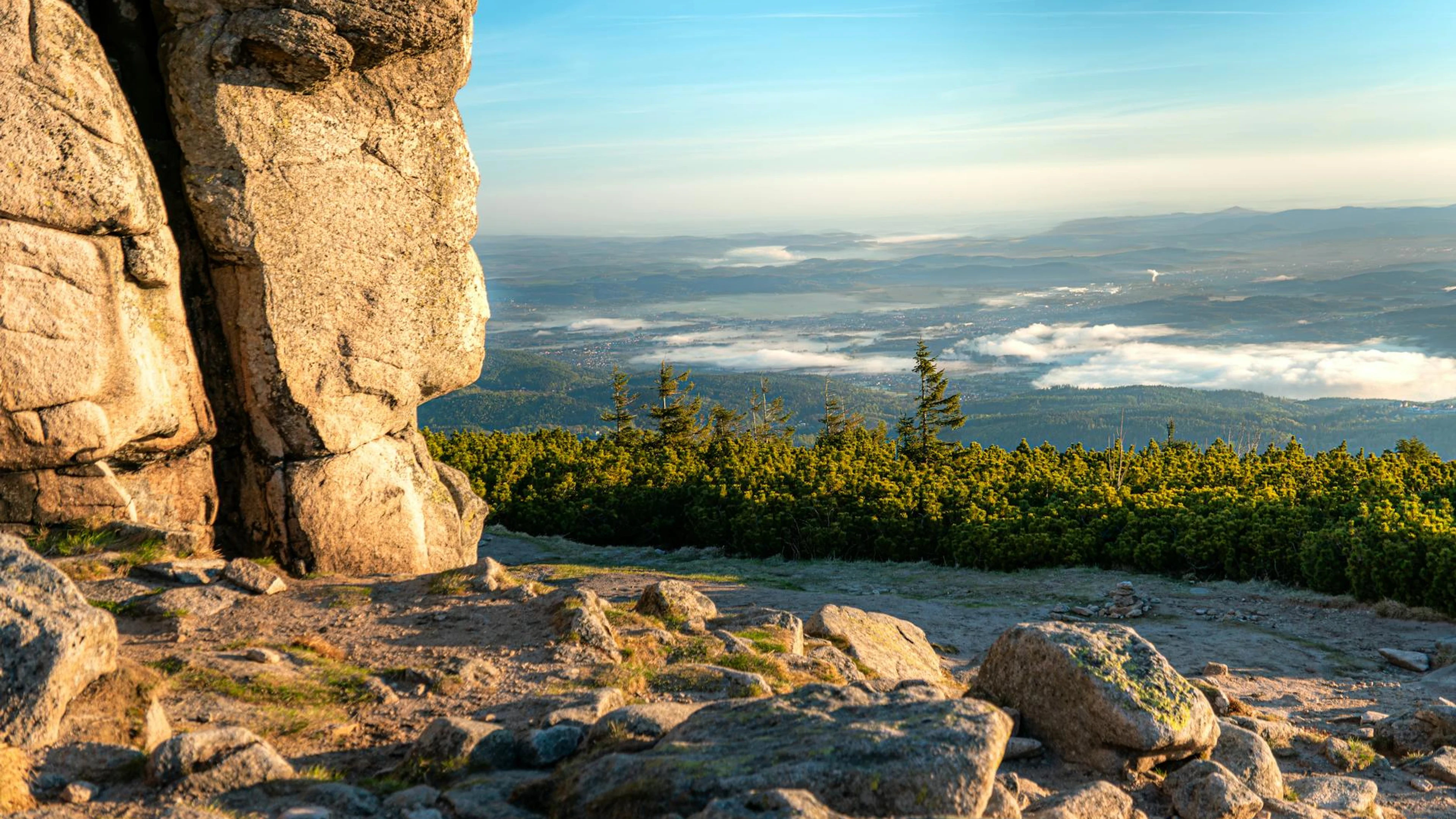 Download Breathtaking landscape of Karkonosze mountains with vibrant sunrise lighting, ou wallpaper for free. 3840x2160 4K Ultra HD resolution, perfect for your desktop. High quality mountain wallpaper.