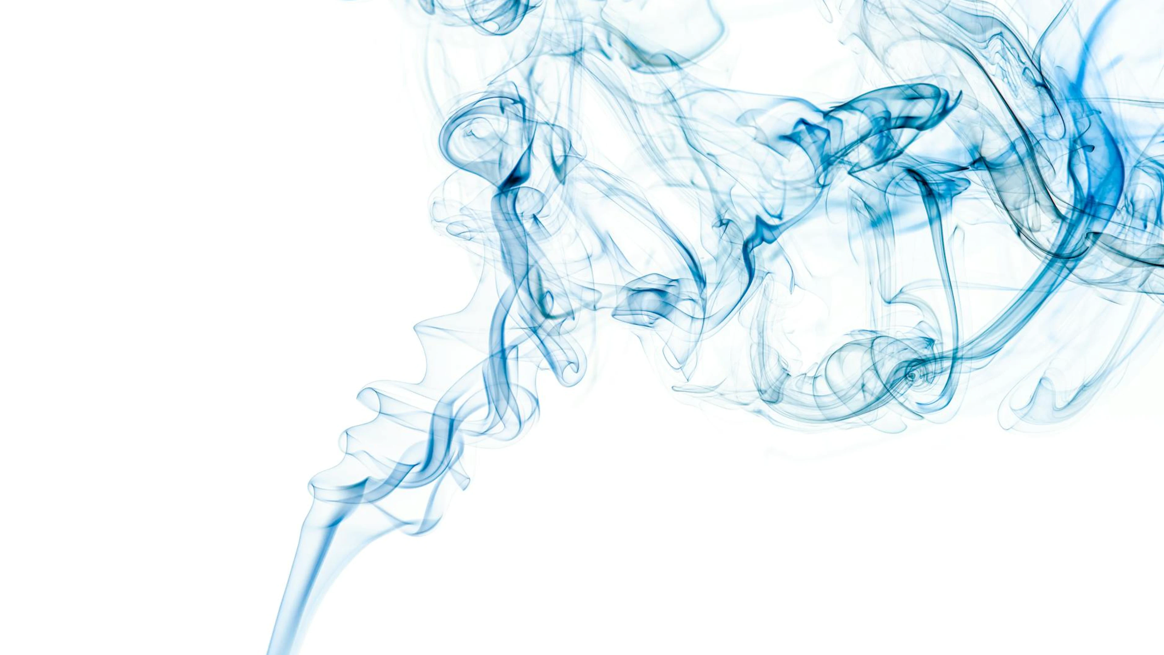 Download Captivating abstract smoke art in blue against a clean white background, perfect wallpaper for free. 3840x2160 4K Ultra HD resolution, perfect for your desktop. High quality aesthetic wallpaper.