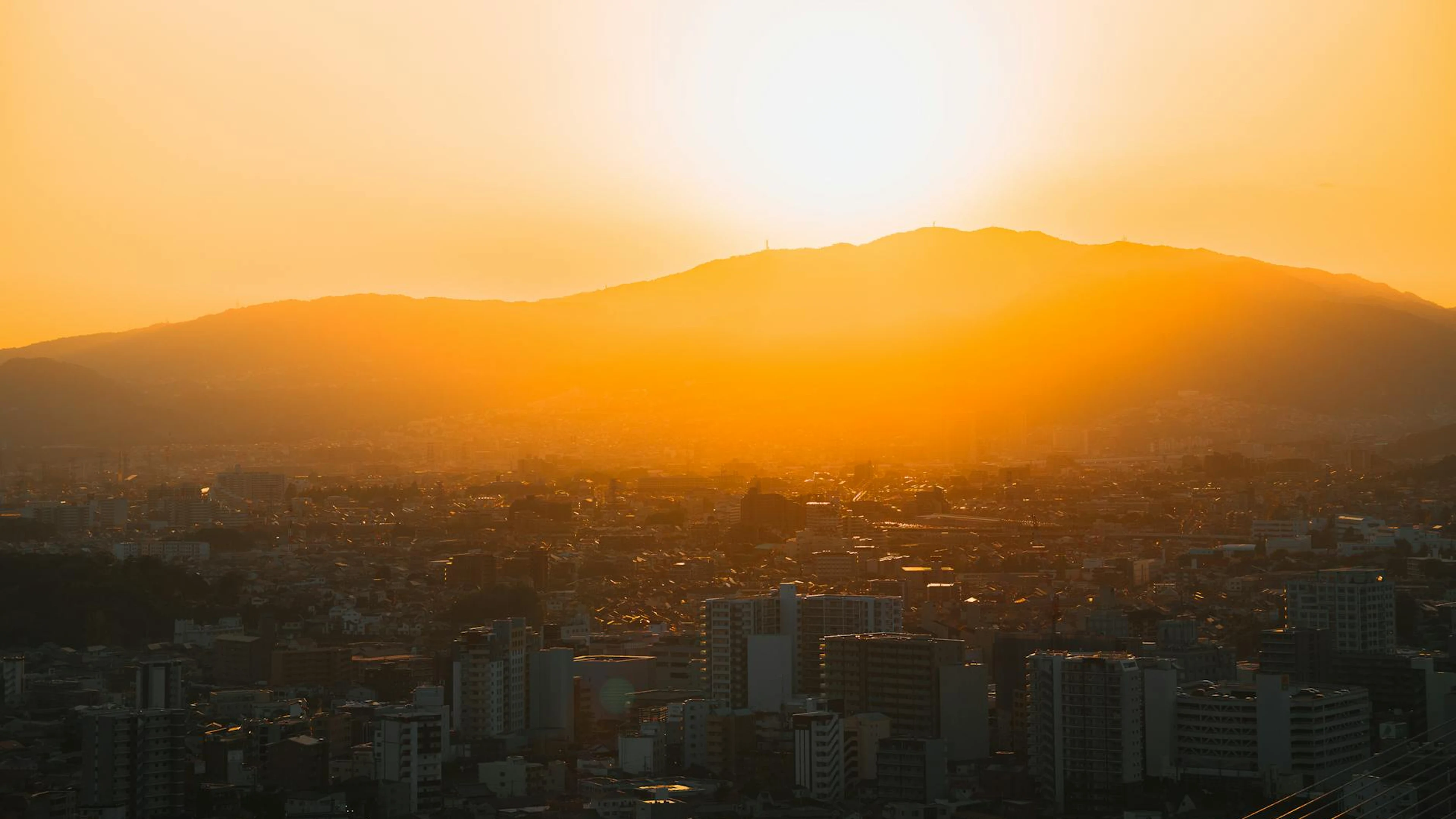Free Captivating sunset view over Икеда cityscape with distant mountains in Osaka, Ja wallpaper in 4K Ultra HD resolution (3840x2160). Beautiful city background for your screen. No signup required.