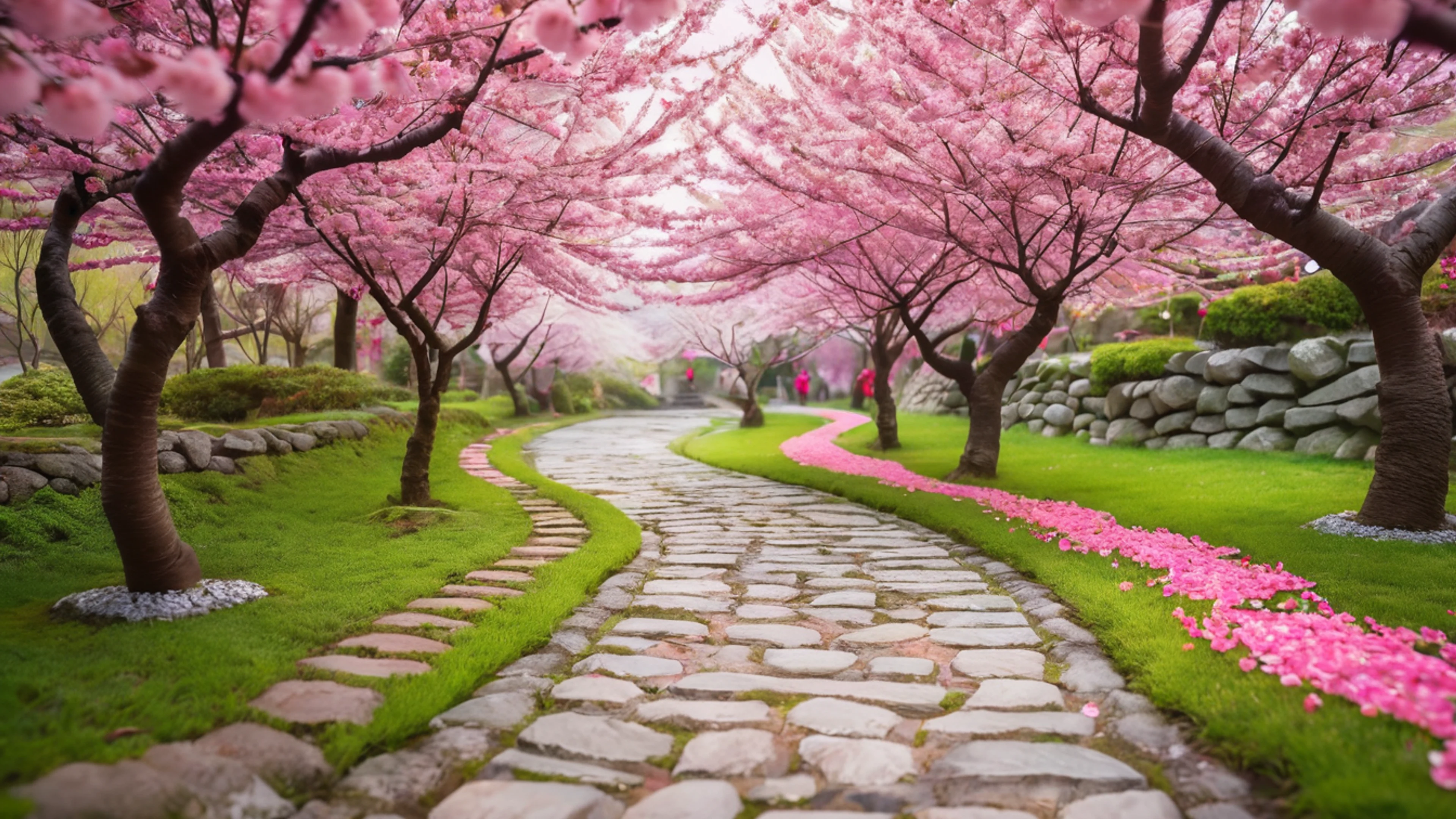 Download Cherry Blossom Garden wallpaper for free. 3840x2160 4K Ultra HD resolution, perfect for your desktop. High quality nature wallpaper.