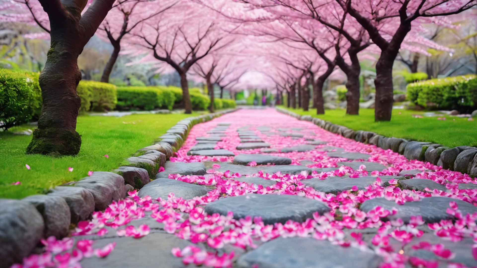 Get this stunning Cherry Blossom Garden wallpaper in tablet quality. 1920x1080 nature wallpaper available for free download.
