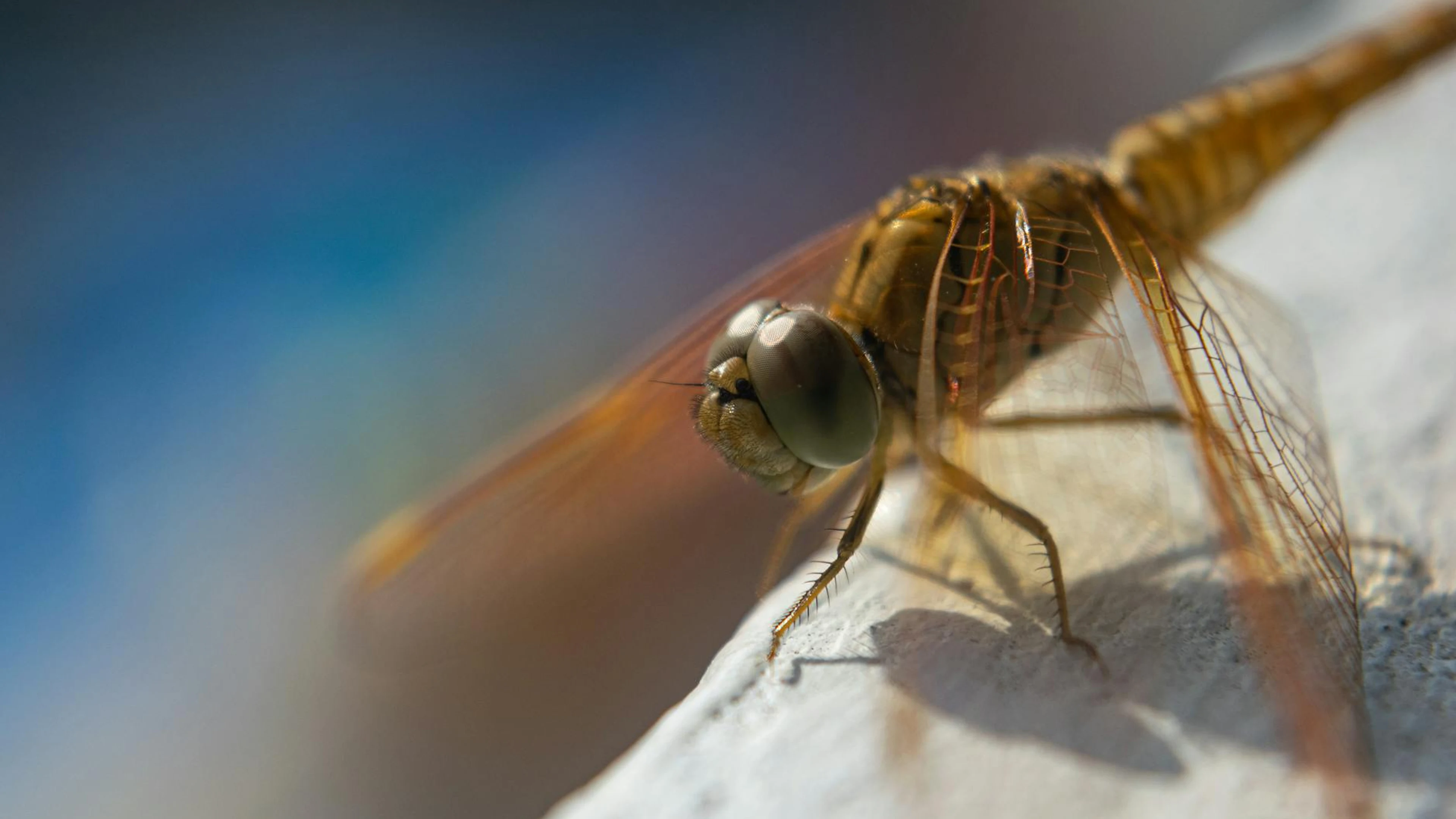 Free Close-up image of a dragonfly showcasing its wings and eyes, perfect for entomol wallpaper in 4K Ultra HD resolution (3840x2160). Beautiful macro background for your screen. No signup required.