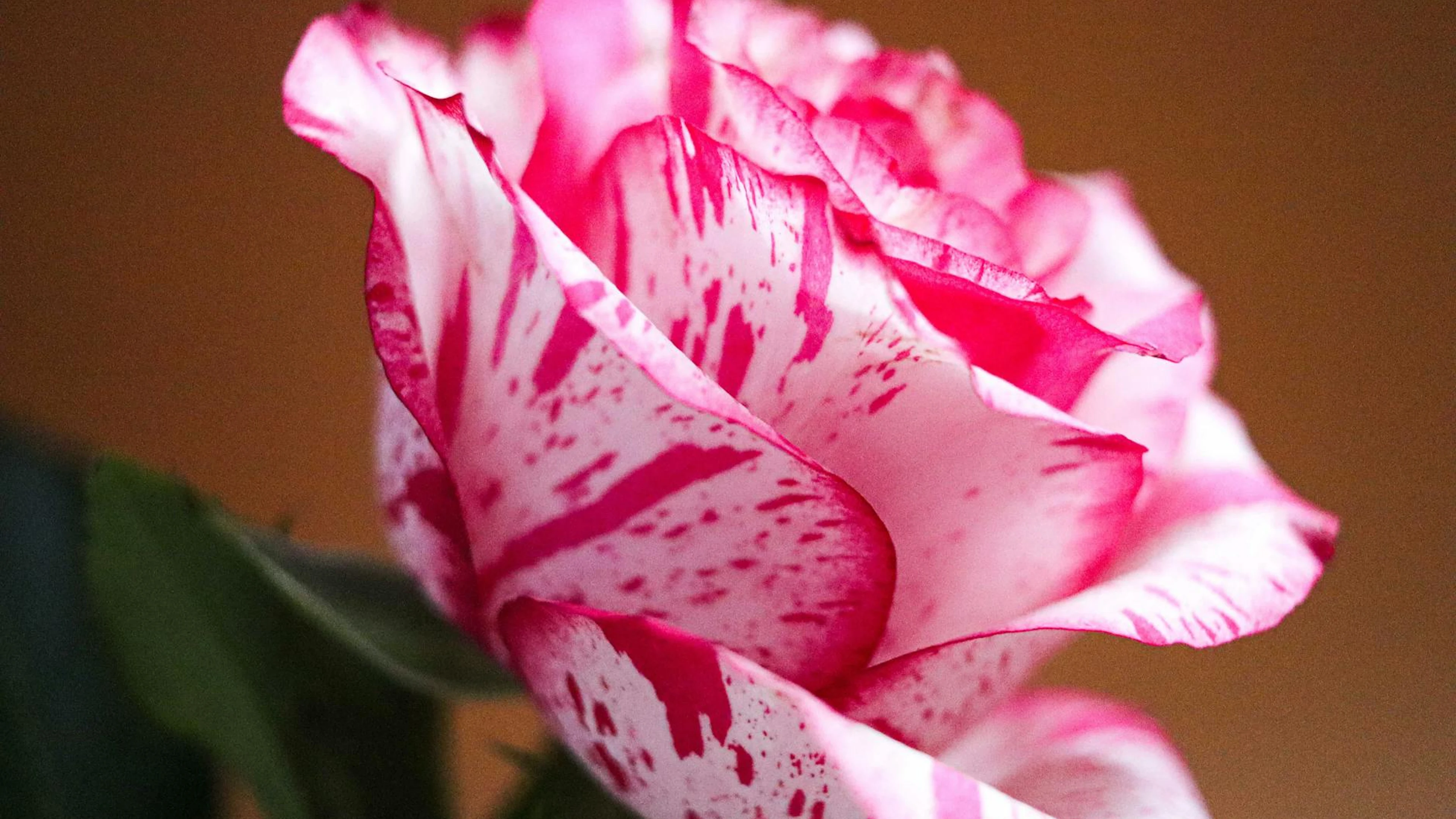 Download Close-up of a pink rose with striking patterns, showcasing natural beauty and co wallpaper for free. 3840x2160 4K Ultra HD resolution, perfect for your desktop. High quality flowers wallpaper.