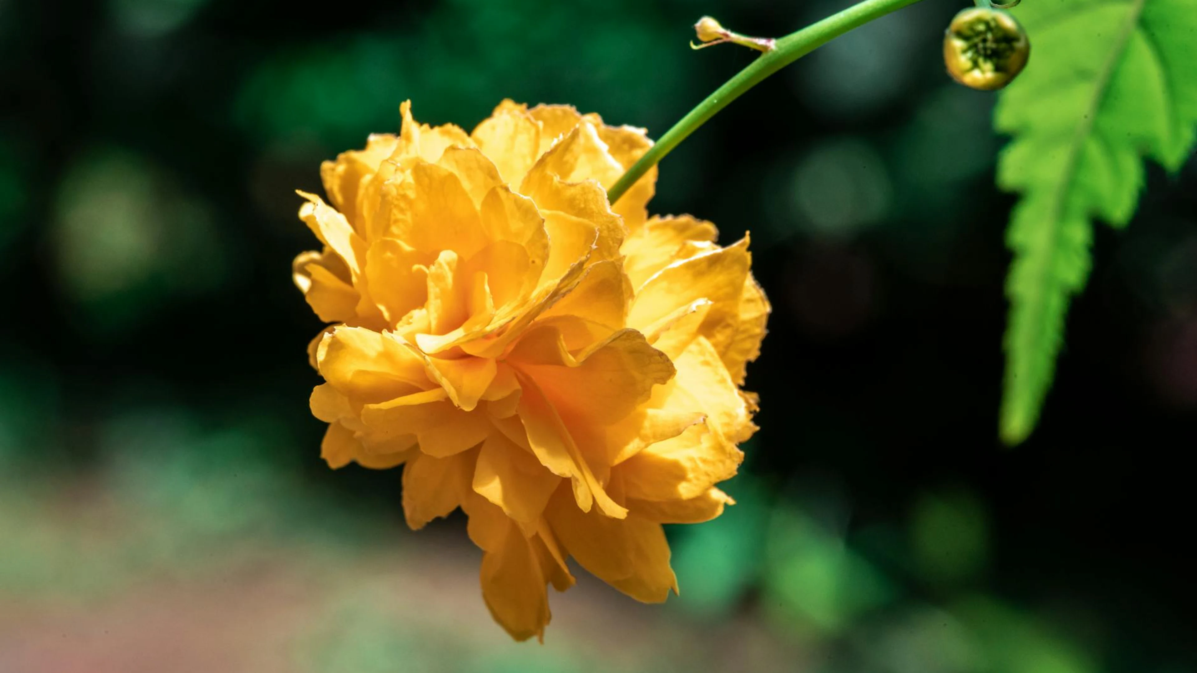 Get this stunning Close-up of a vivid yellow flower under natural lighting with blurred background wallpaper in 4K Ultra HD quality. 3840x2160 macro wallpaper available for free download.