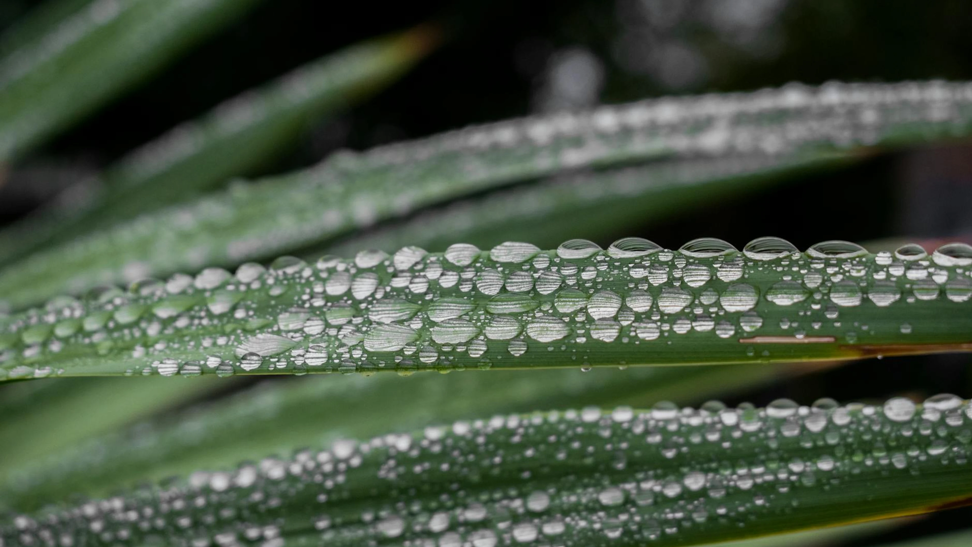 Get this stunning Close-up of fresh dewdrops on green leaves creating a serene natural scene. wallpaper in 4K Ultra HD quality. 3840x2160 macro wallpaper available for free download.