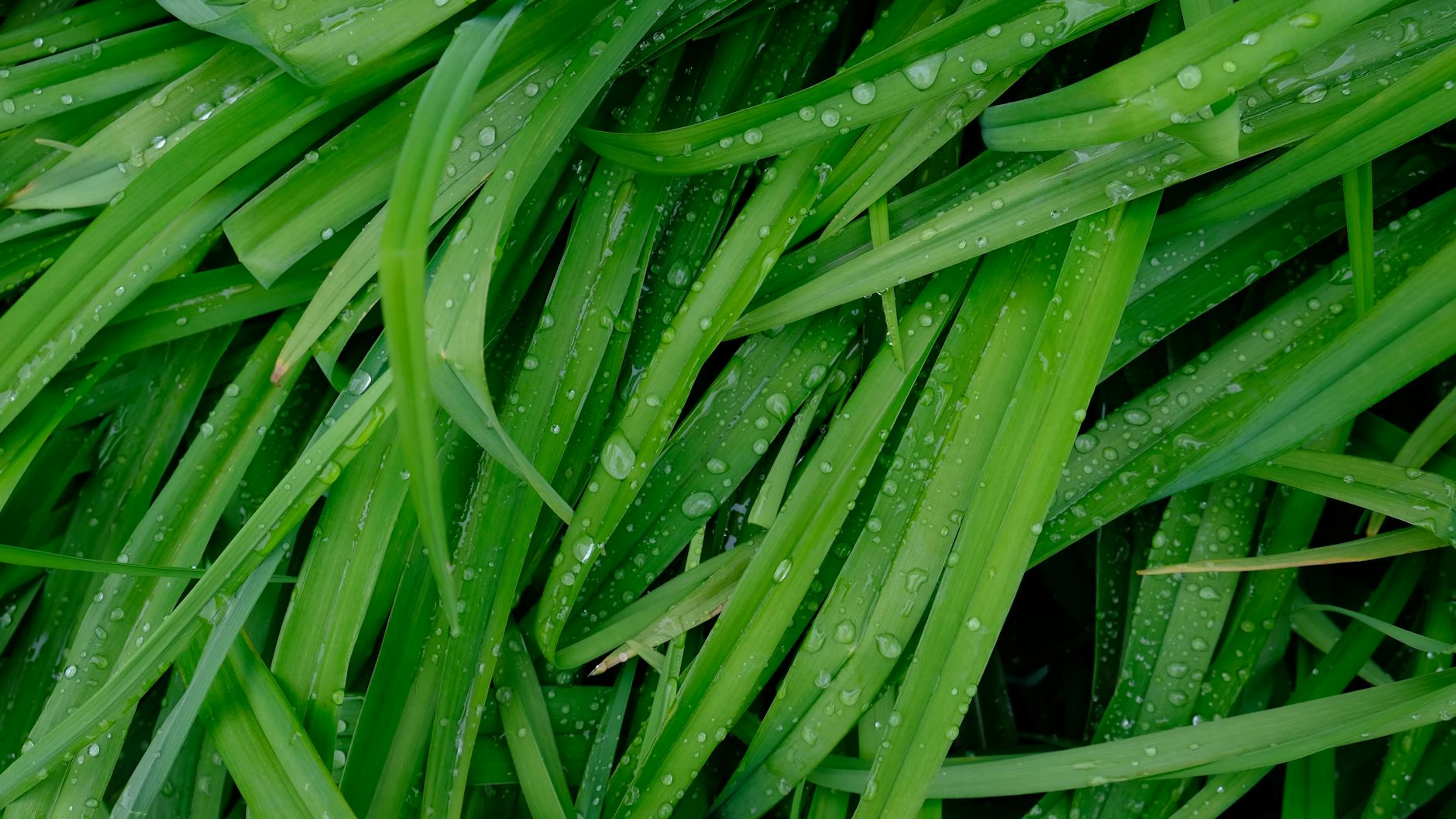 Get this stunning Close-up of vibrant green grass blades covered in dewdrops, showcasing natural f wallpaper in 4K Ultra HD quality. 3840x2160 macro wallpaper available for free download.