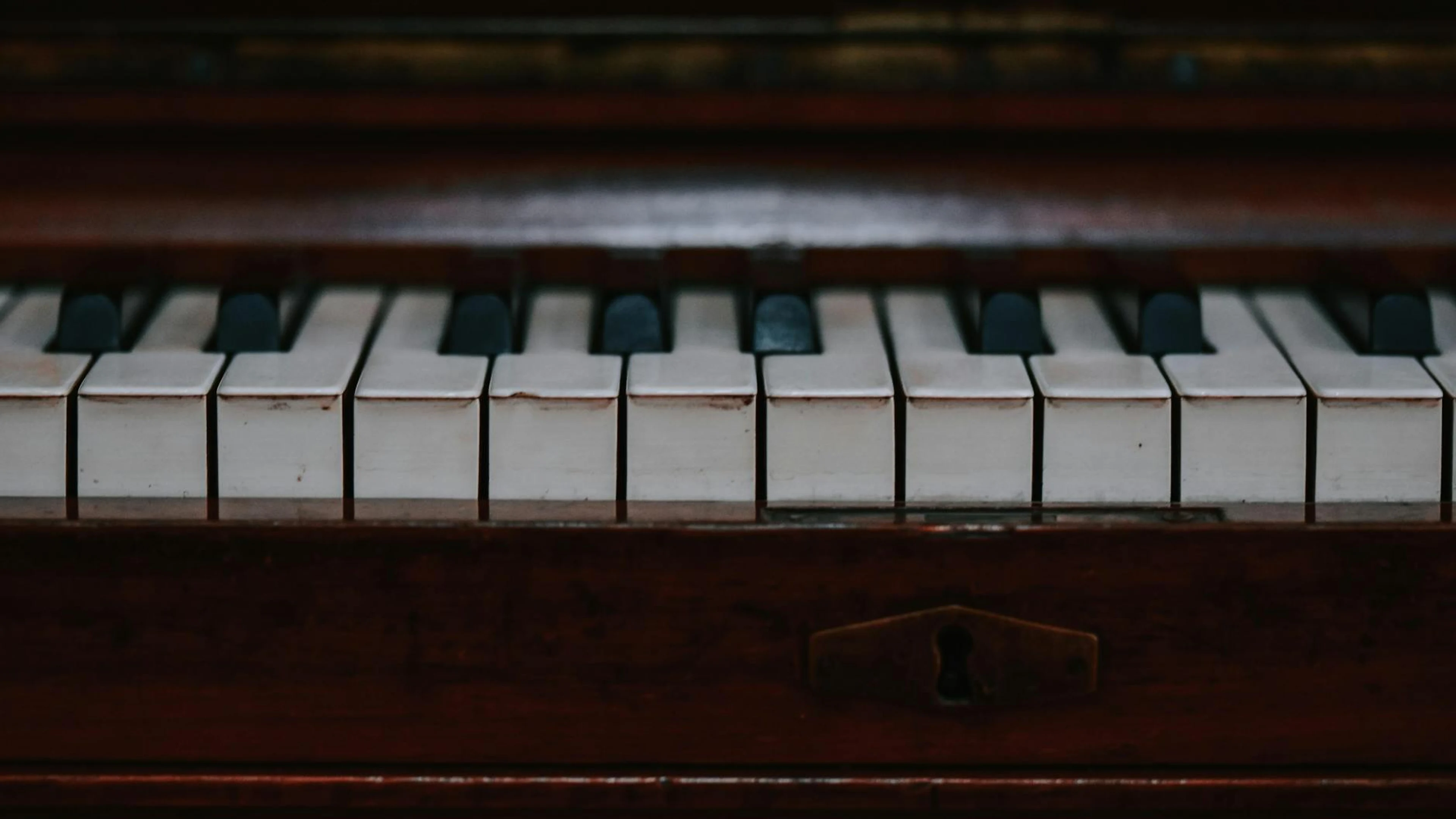 Close-up of vintage piano keys showcasing their antique and classic beauty.