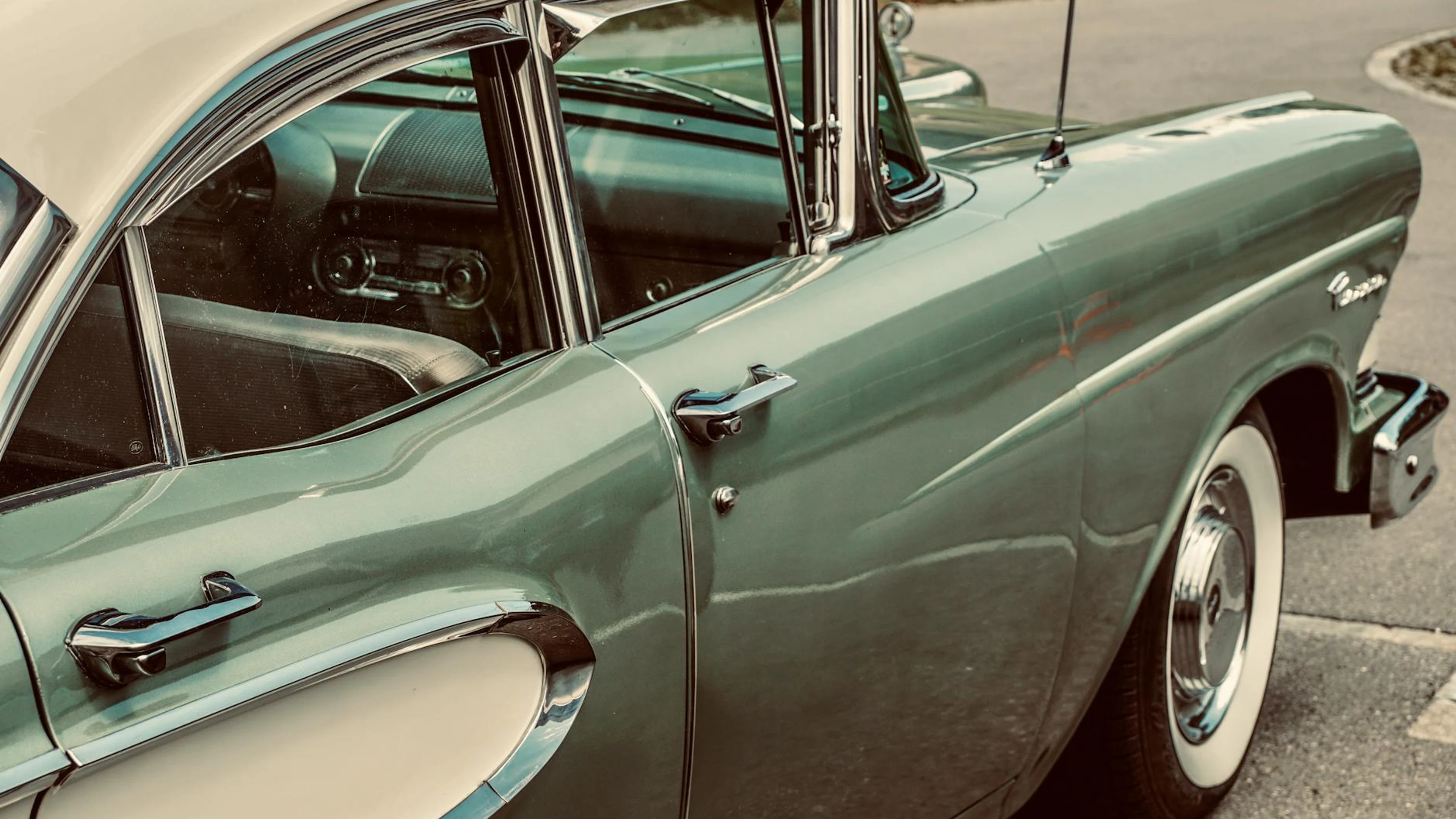 Get this stunning Close-up view of a green vintage classic car exterior, showcasing its sleek desi wallpaper in 4K Ultra HD quality. 3840x2160 cars wallpaper available for free download.