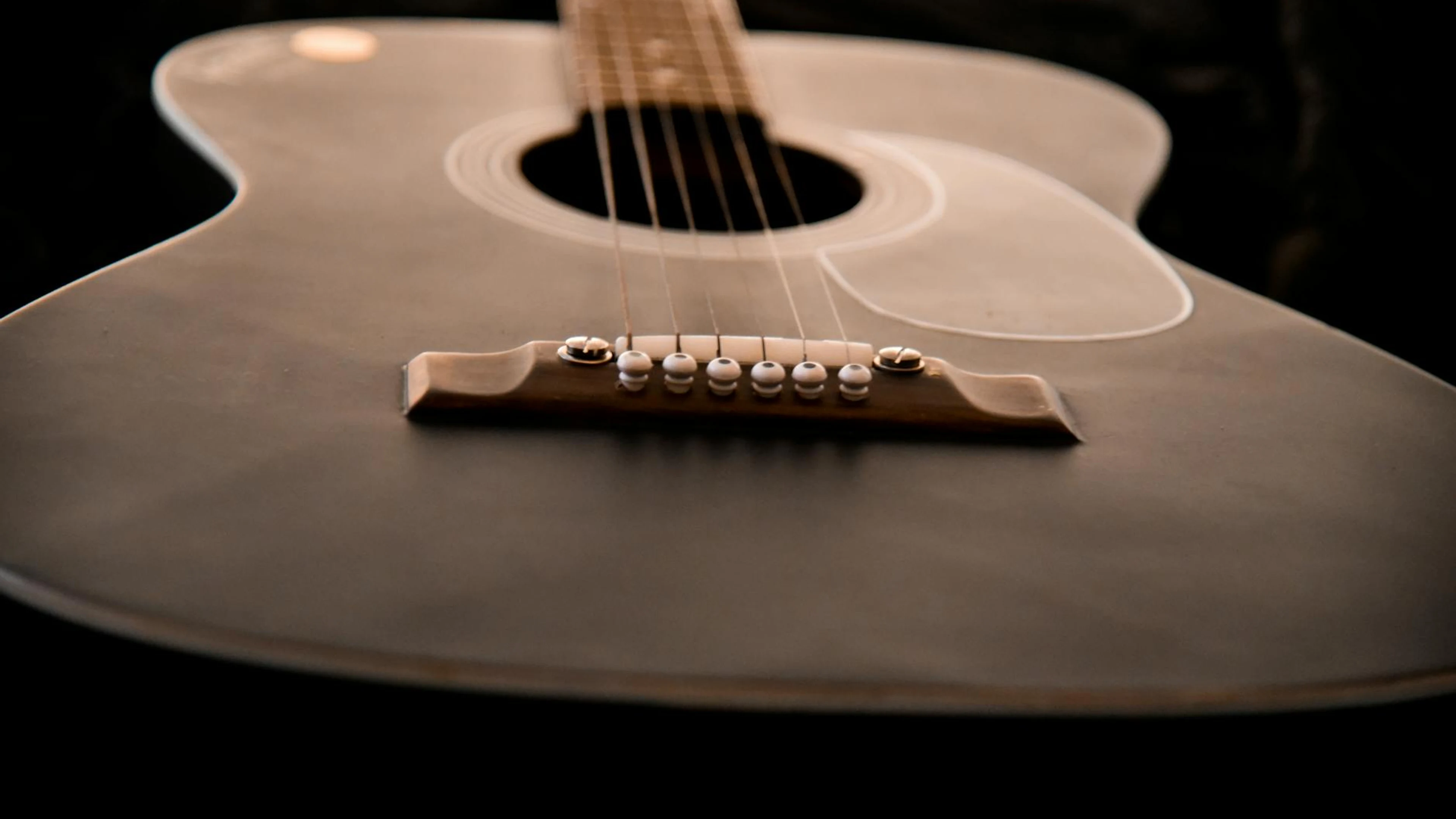 Download Close-up view of an acoustic guitar showcasing strings and wooden texture. wallpaper for free. 3840x2160 4K Ultra HD resolution, perfect for your desktop. High quality music wallpaper.