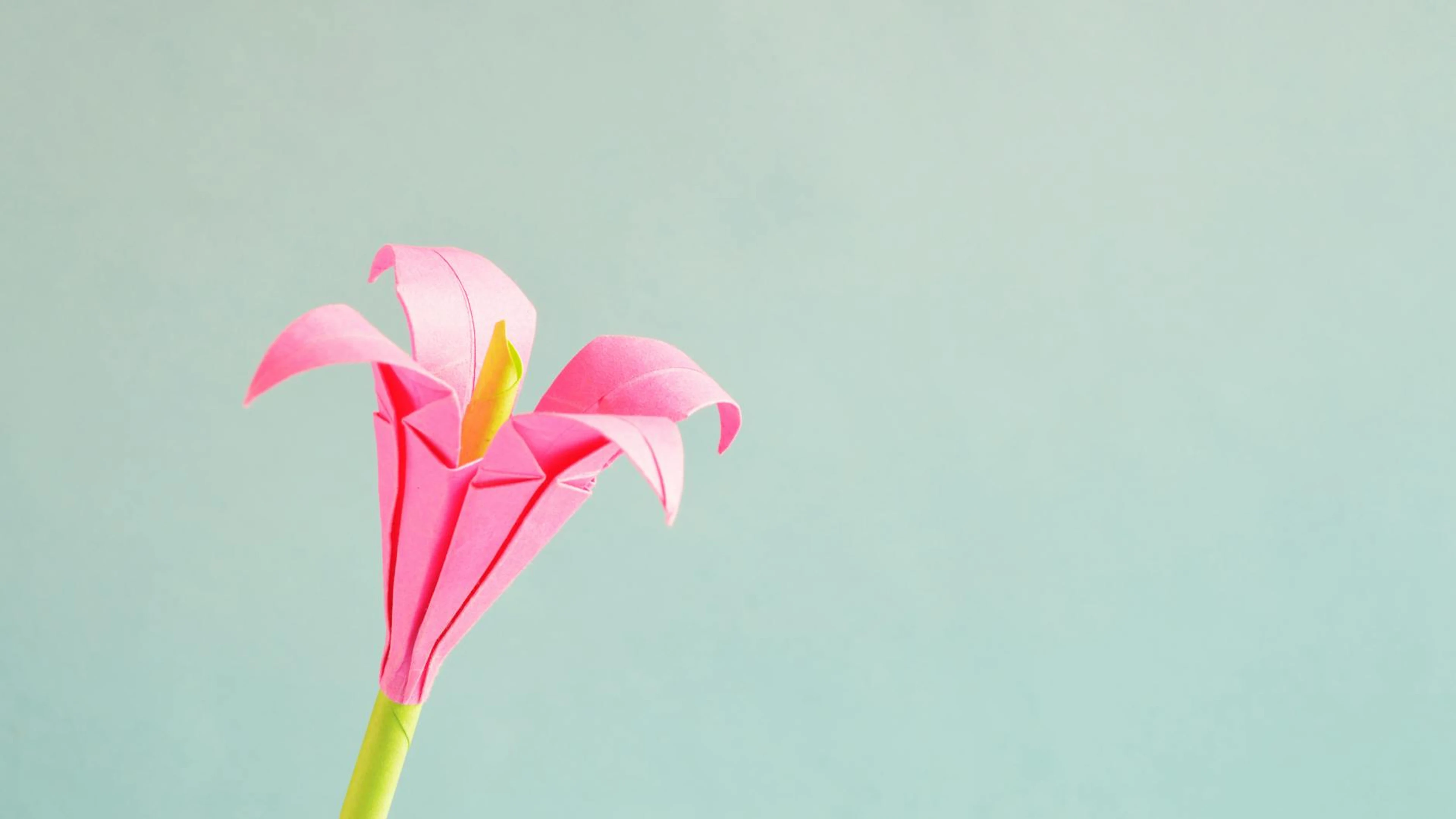 Colorful paper origami lily flower against a soft pastel backdrop, symbolizing c