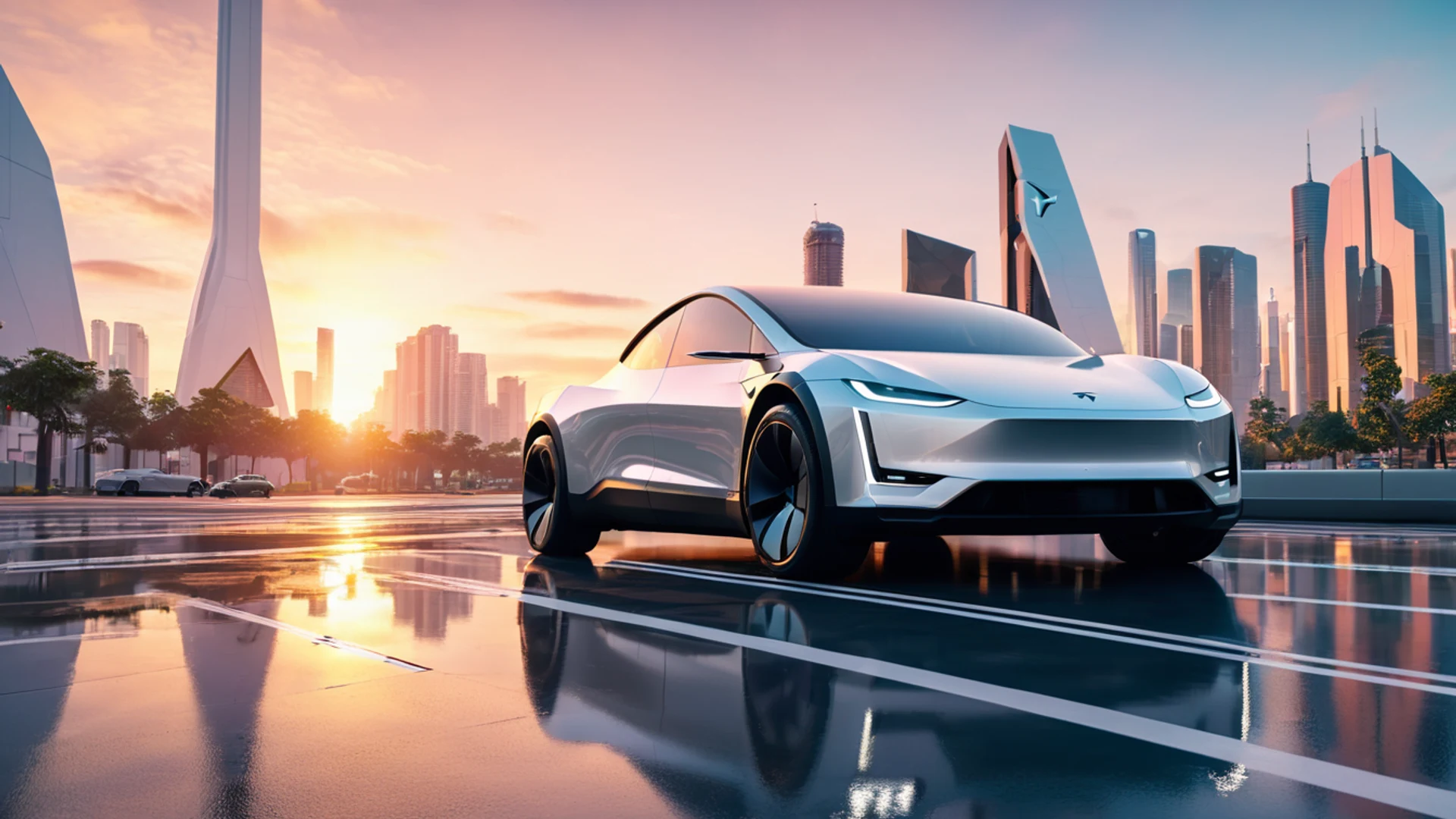 Download Cybertruck Futuristic City wallpaper for free. 1920x1080 tablet resolution, perfect for your desktop. High quality cars wallpaper.
