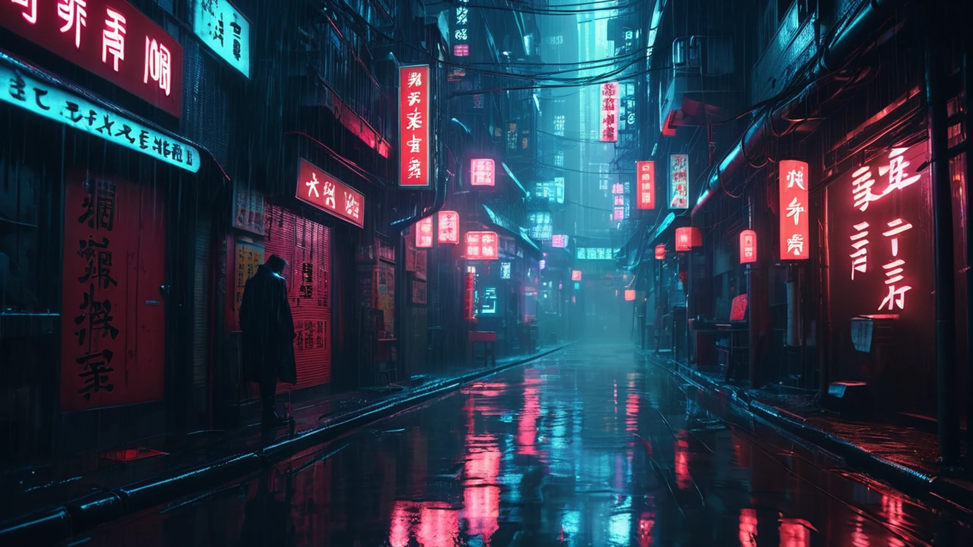 Get this stunning Dark Rainy Cyberpunk Alley wallpaper in tablet quality. 1920x1080 dark wallpaper available for free download.