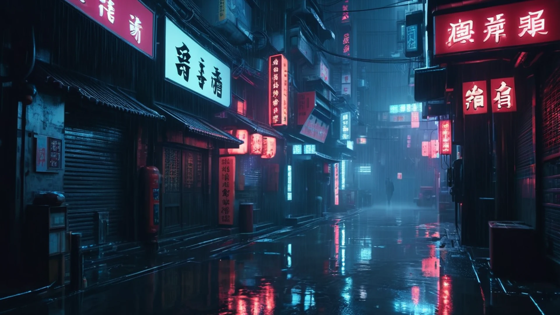 Dark Rainy Cyberpunk Alley - free hd dark wallpaper for desktop
